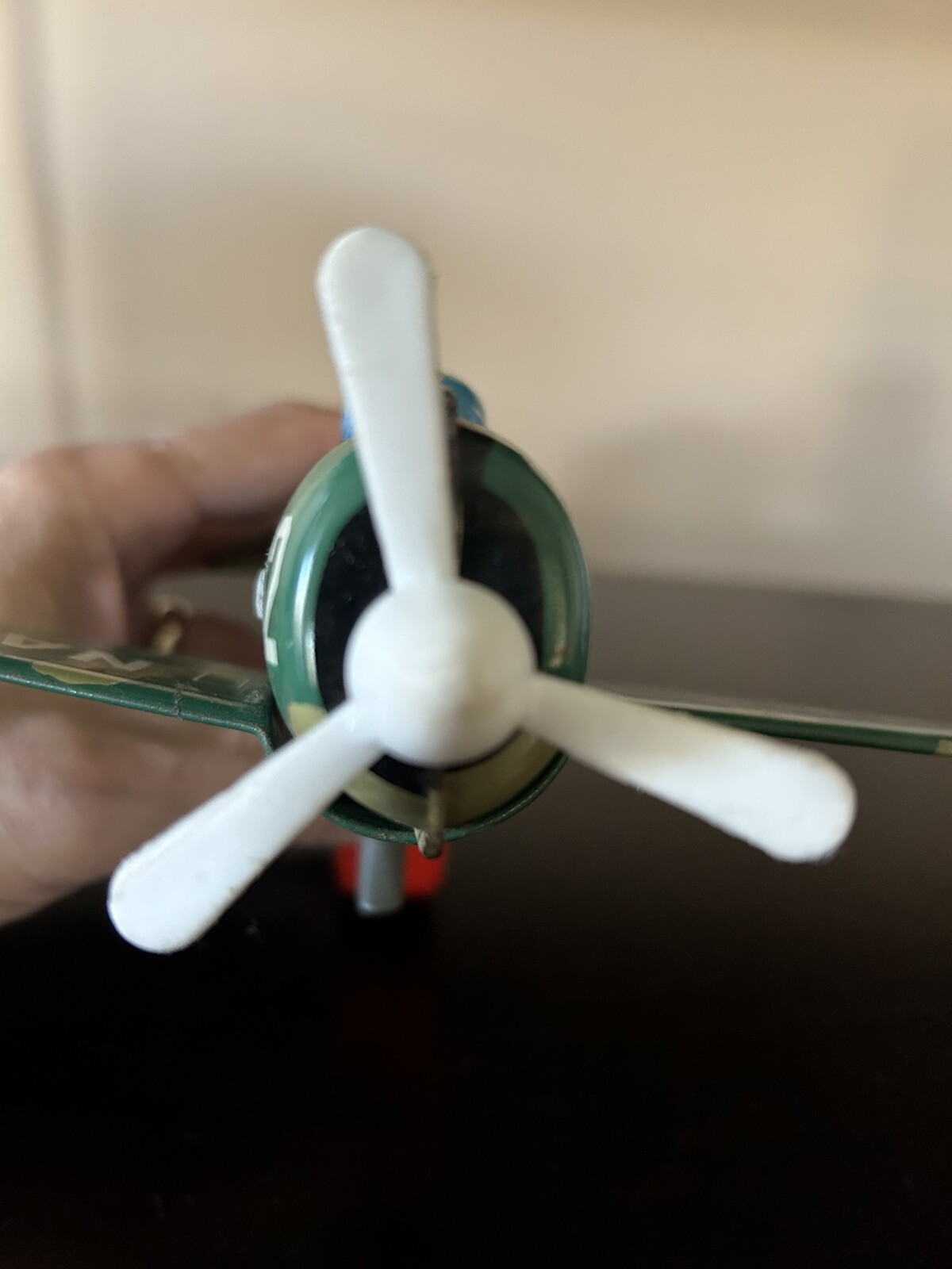1950's SPARK SHOOTING WW2 GRUMMAN FIGHTER PLANE TIN LITHO TOY JAPAN NOMURA