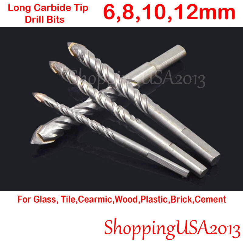 4 Pcs Drill Bit Set 6,8,10,12mm Carbide Tip For Brick Tile glass, tile, ceramic
