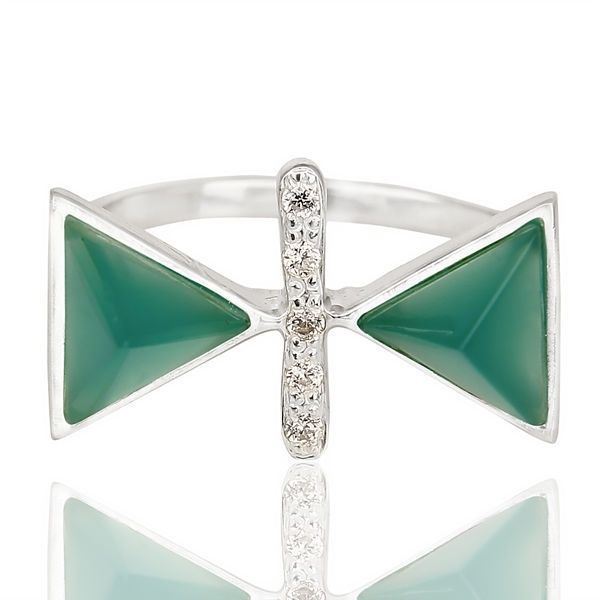 Triangle Cut CZ Solid 92.5 Sterling Silver Ring Green Onyx Gemstone Jewelry