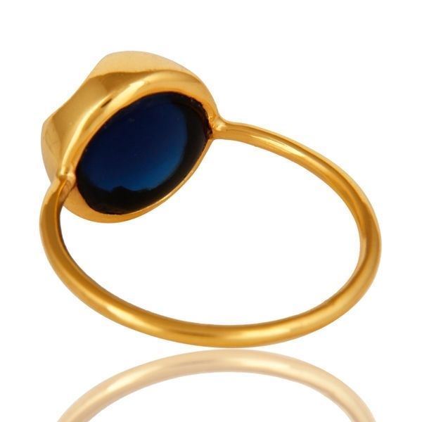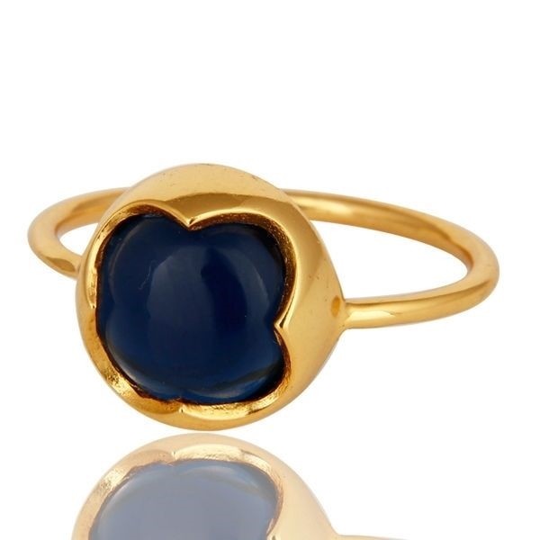 925 Sterling Silver 14K Gold Plated Jewelry Natural Blue Corundum Gemstone Ring