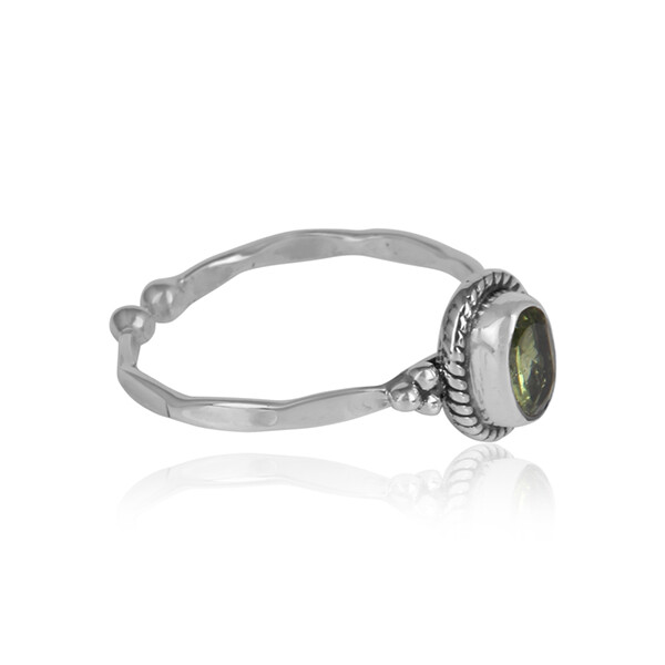 Peridot Gemstone Girls Designer 925 Silver Oxidized Ring Handmade Jewelry