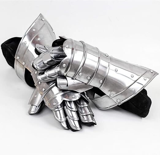 German, 15th C. Medieval Armor Knight Steel Gauntlets - Steel Premium Leather
