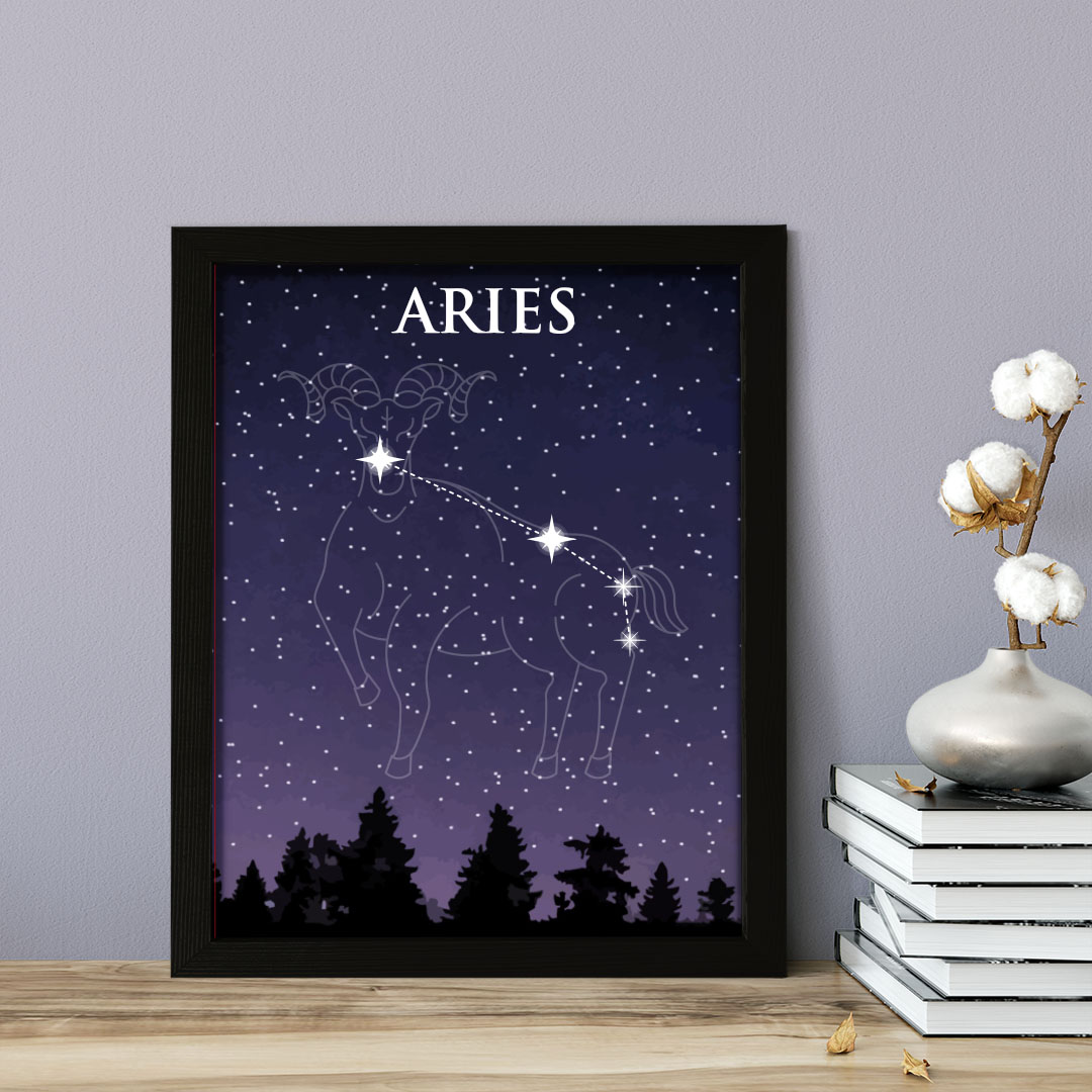 Designs ByLITA Aries Zodiac Sign Night Sky, Wall Print Art