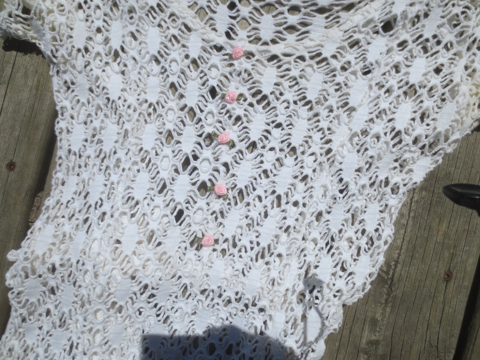 Vintage Cotton Crochet Hand Knit Style Summer Dress Made in the USA - Size Small
