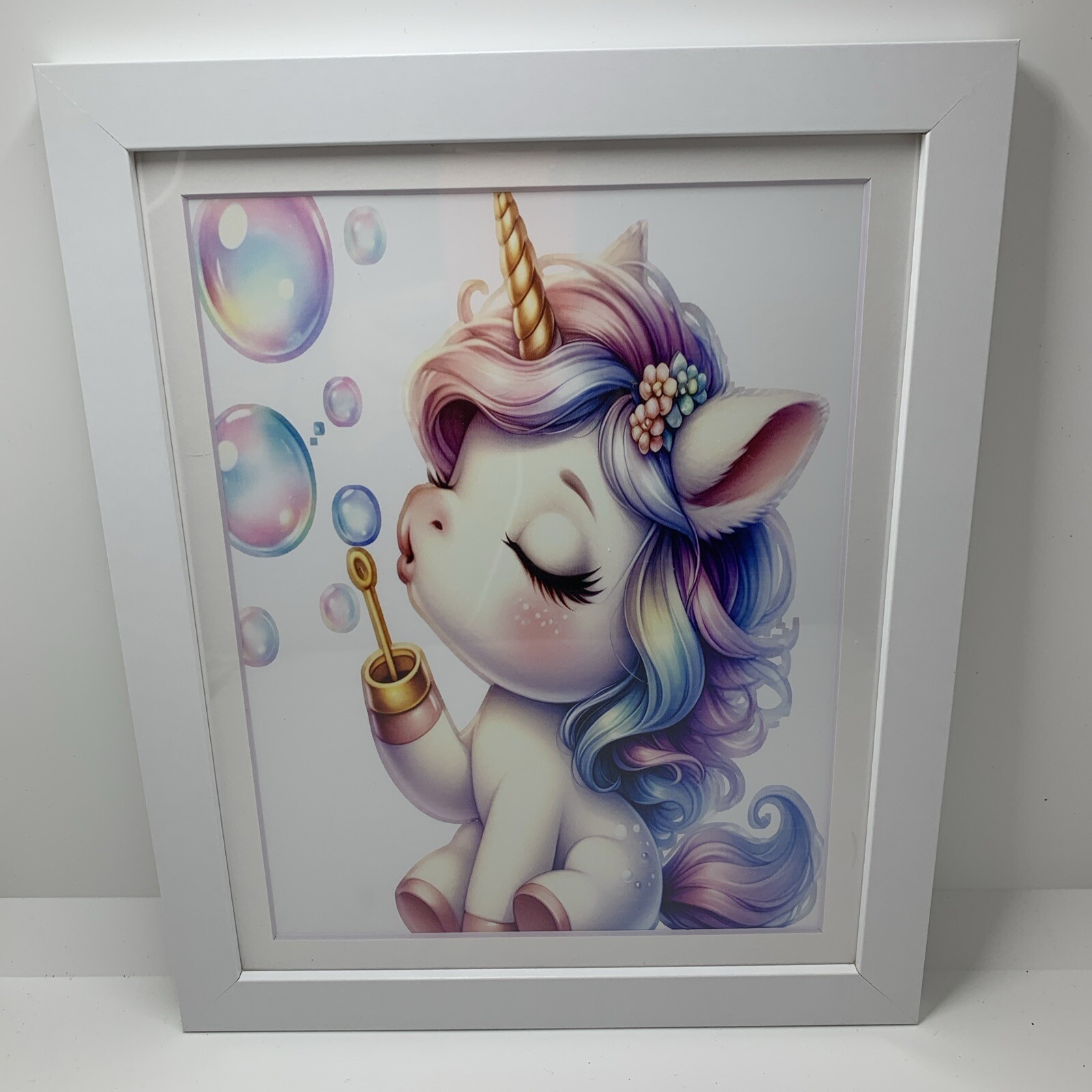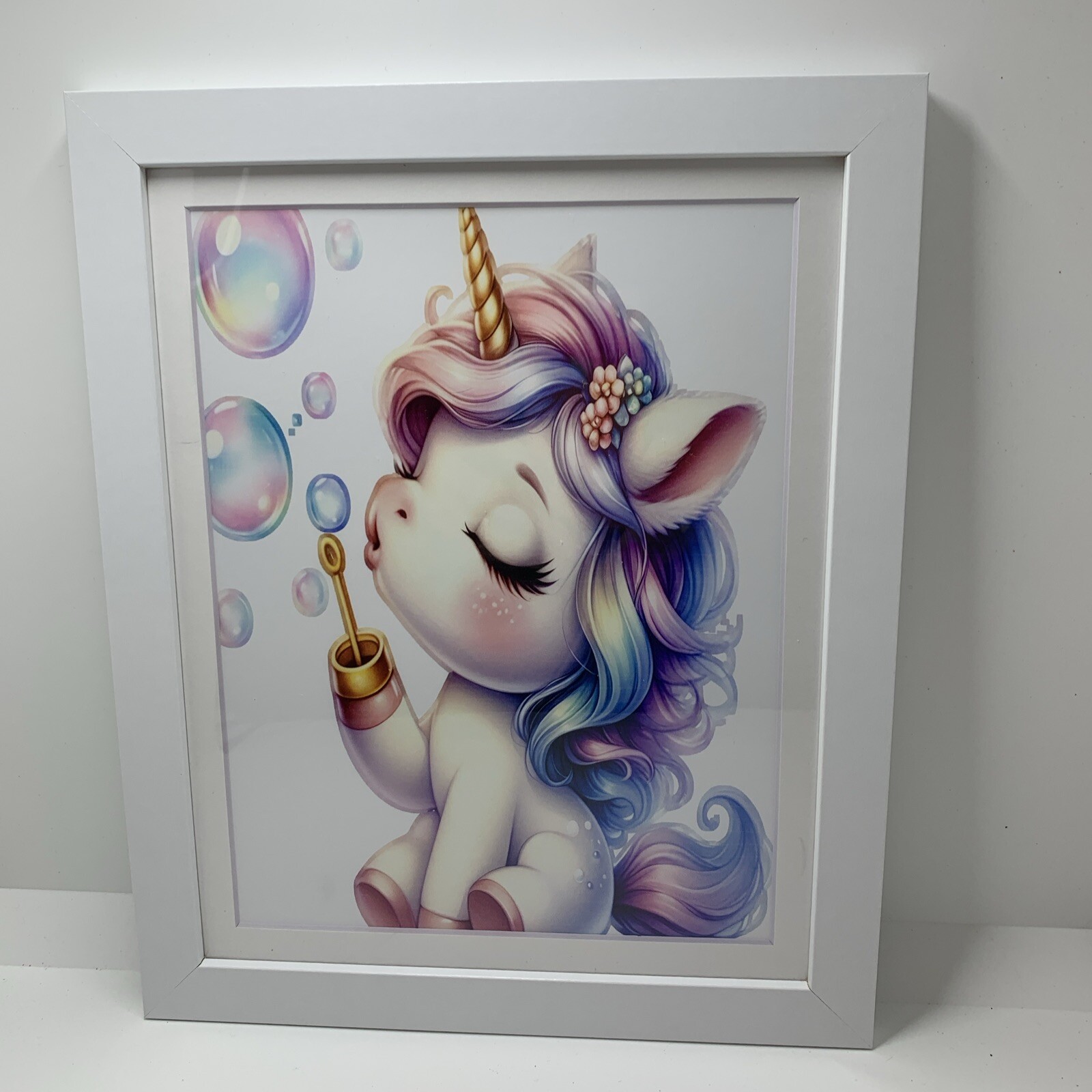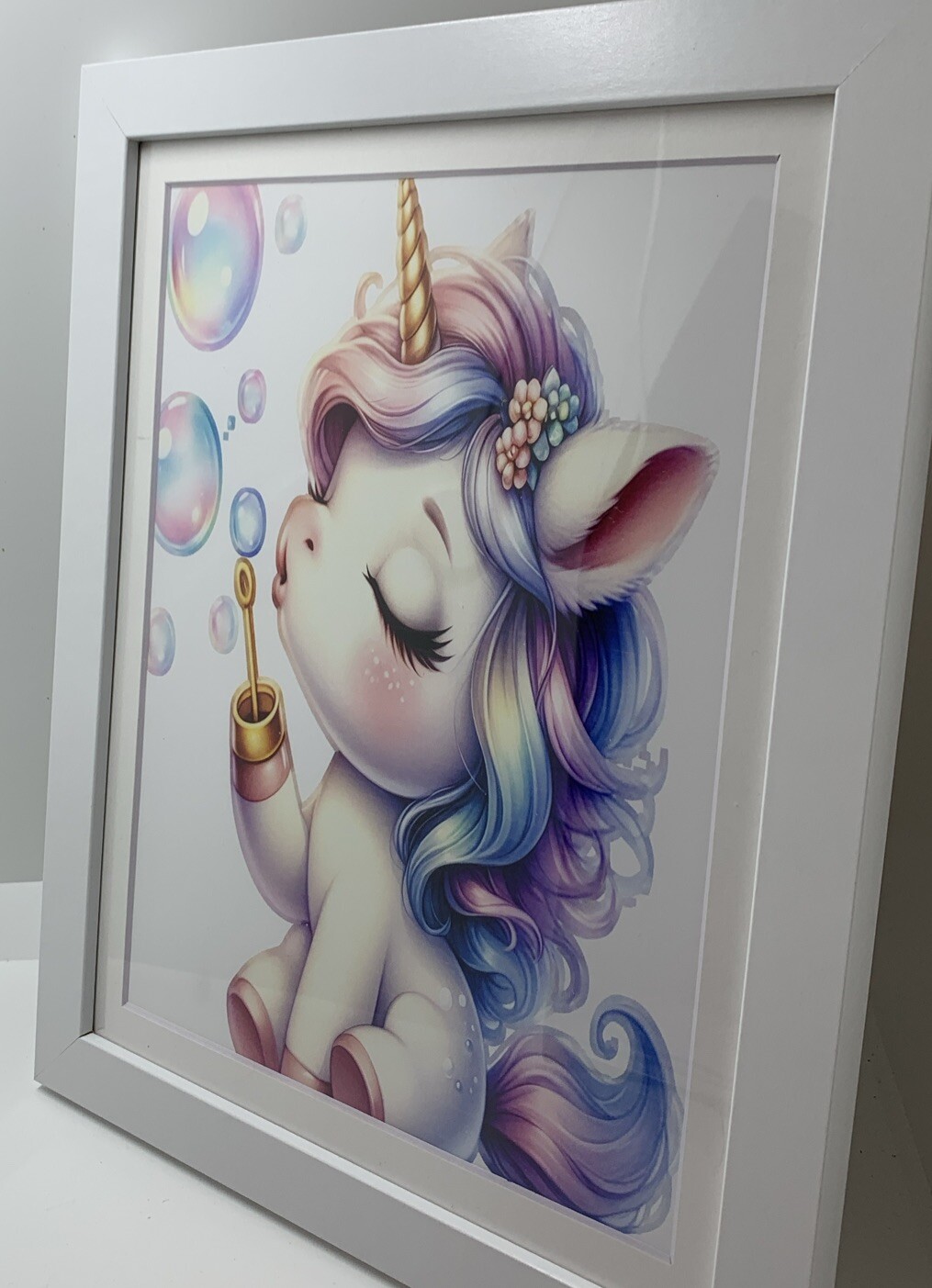 Baby Room Decor. Unicorns, Pastel Colors, Framed Artwork . Cute Decor.
