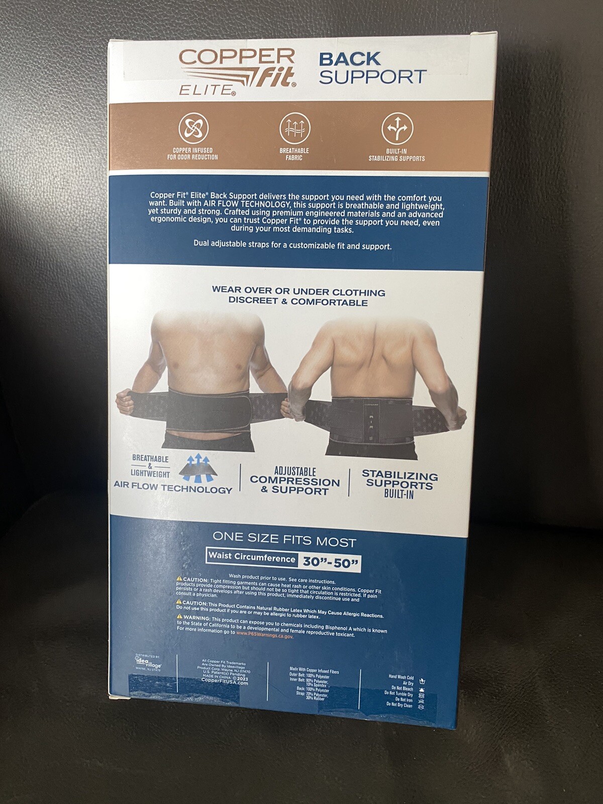 Elite Copper Back Support Compression Adjustable Straps Stabilizing Airflow