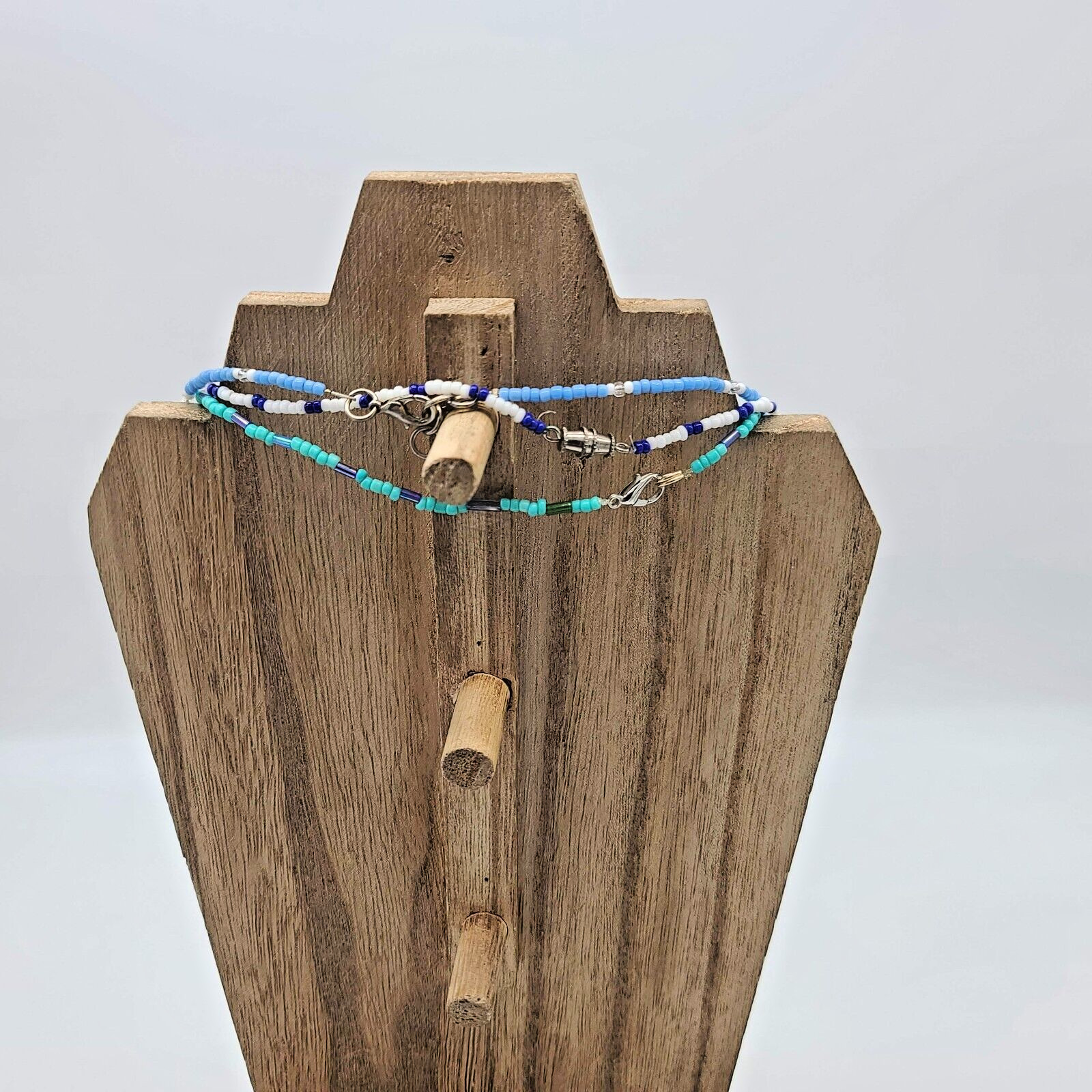 3 Pc Blue, Turquoise White Seed Bead Choker Necklace Set, 14