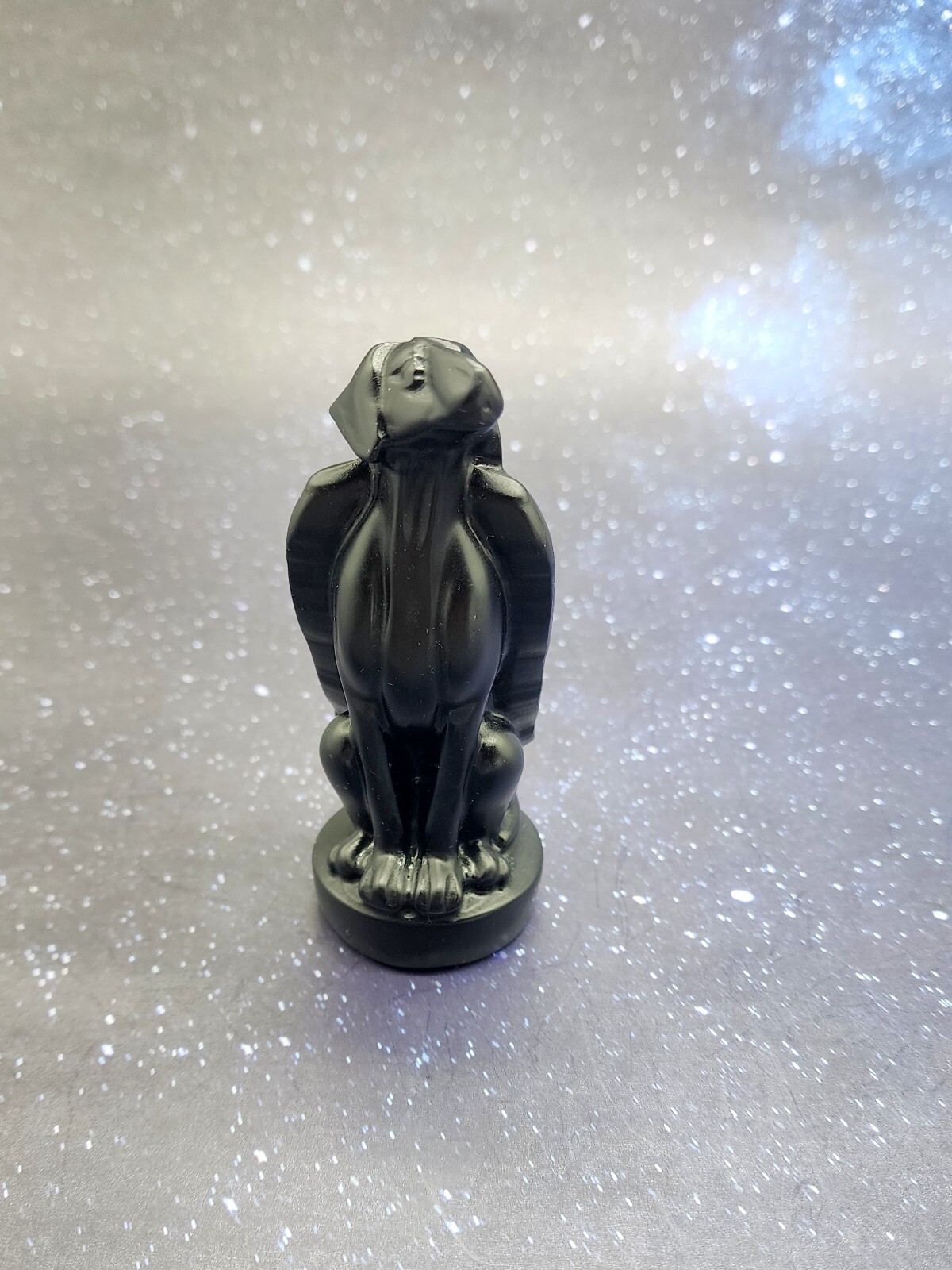 Black Obsidian Winged Angel Dog Pet Memorial, Pet Loss Gift, Gemstone Carving