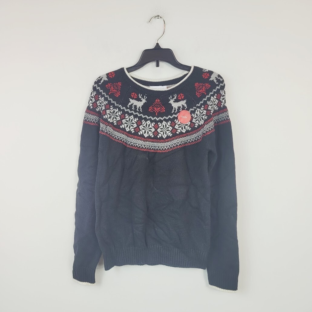 Charter Club Girls Medium Deep Black Fair Isle Family Sweater NWT AM18