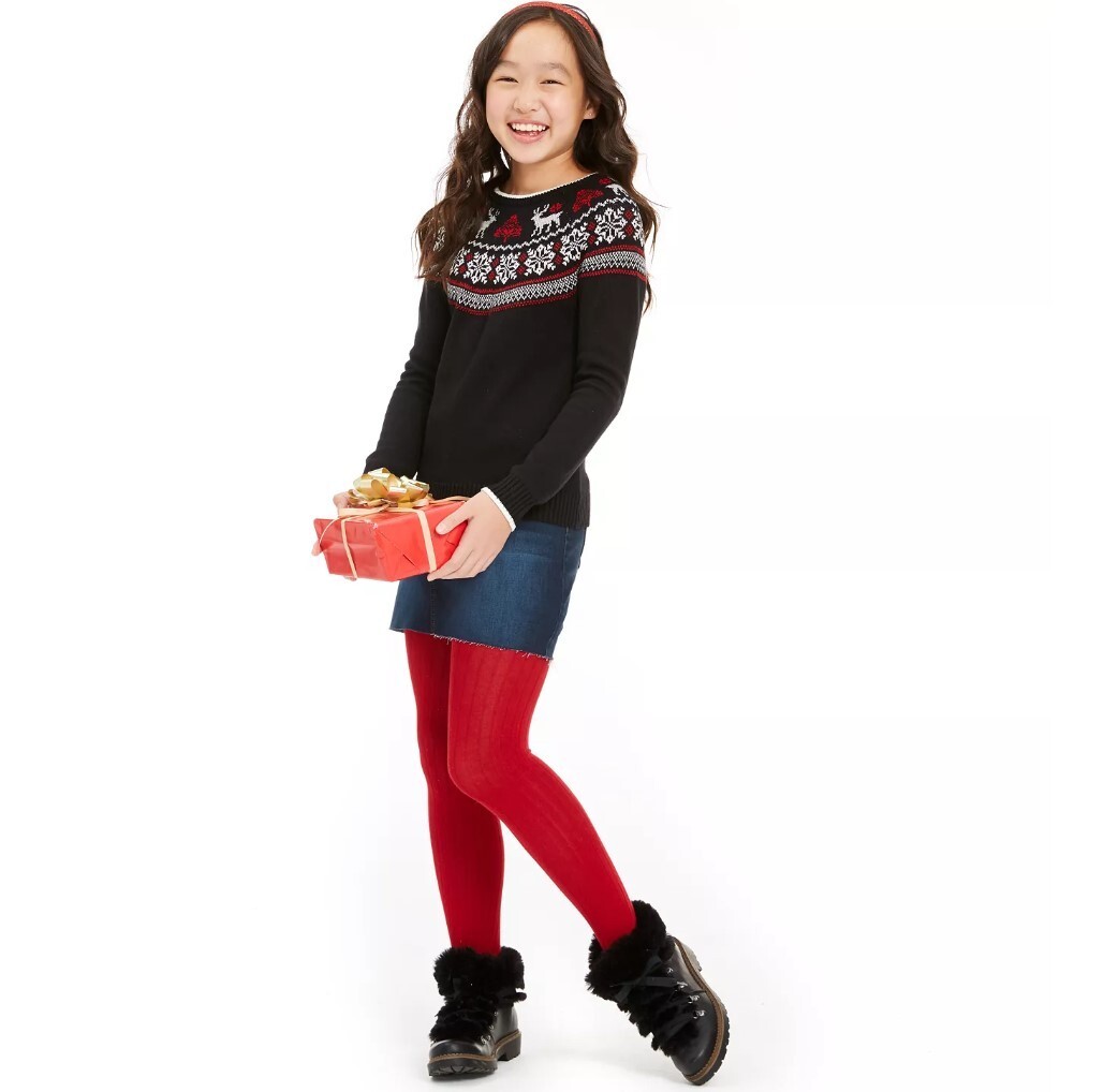 как выглядит Charter Club Girls Medium Deep Black Fair Isle Family Sweater NWT AM18 фото