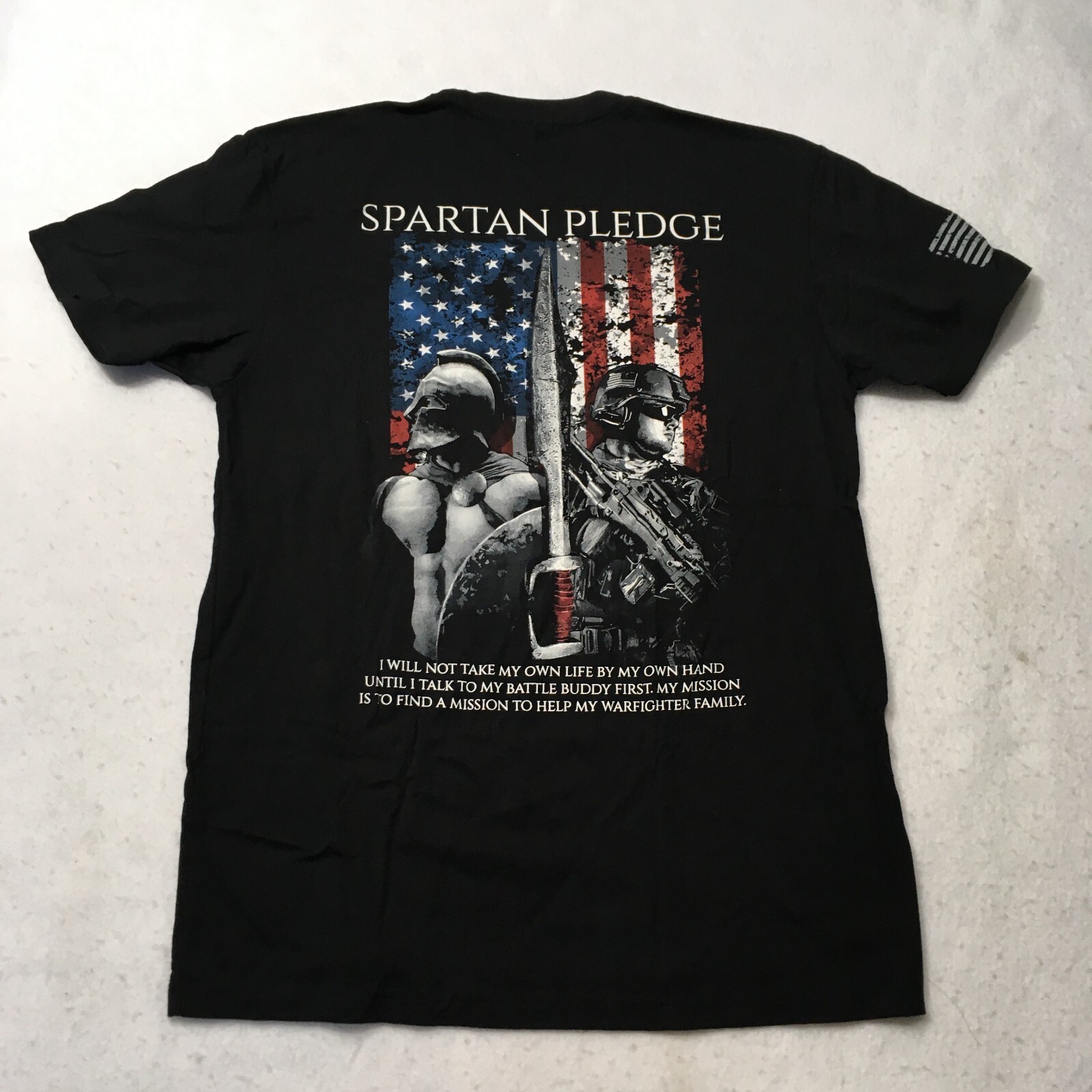 как выглядит Mens USA Flag Spartan pledge graphic double sided Black T Shirt Sz Medium M фото