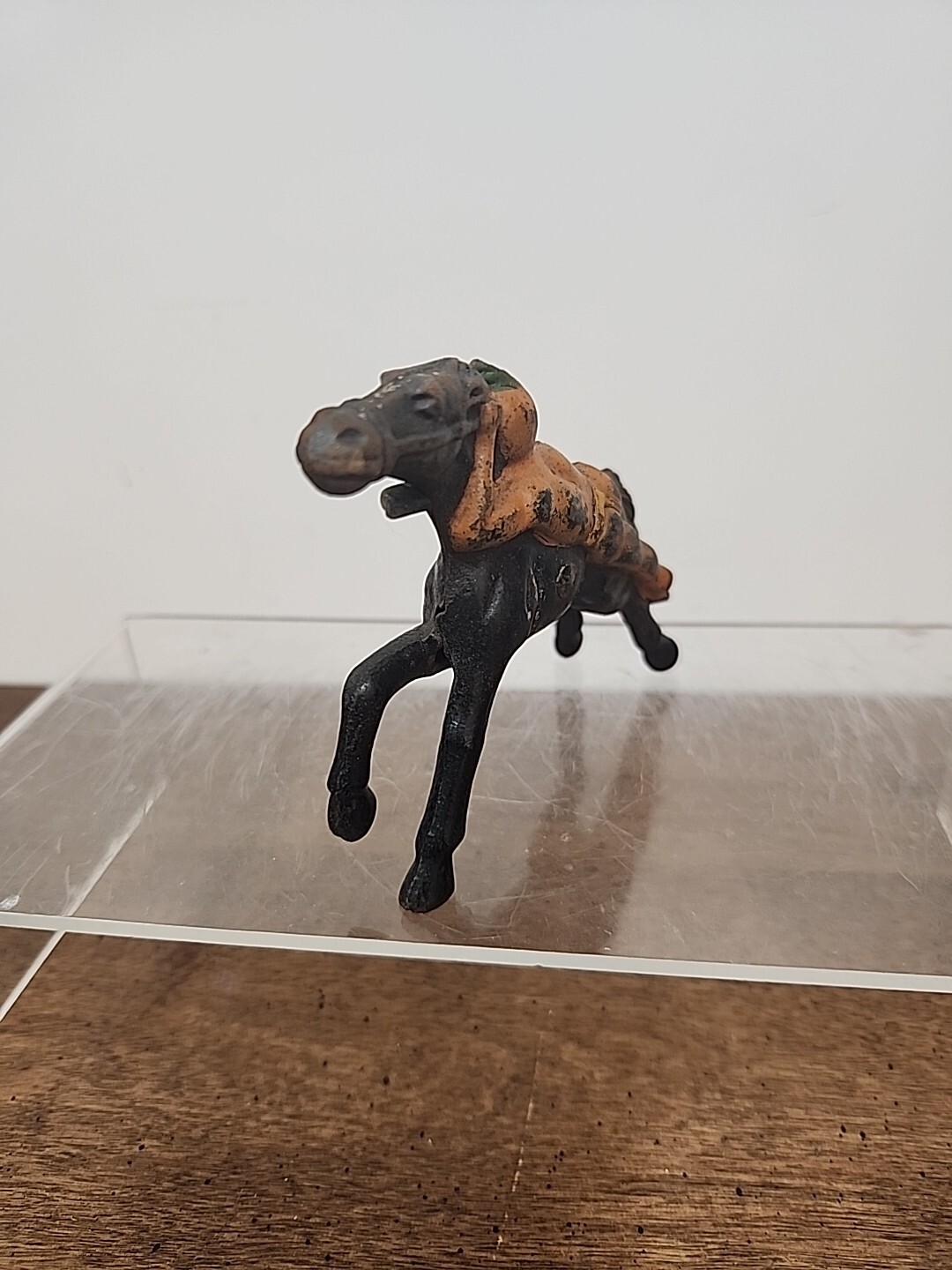 • ANTIQUE GREY IRON NATIVE AMERICAN MOUNTED ON HORSE WITH RIFLE