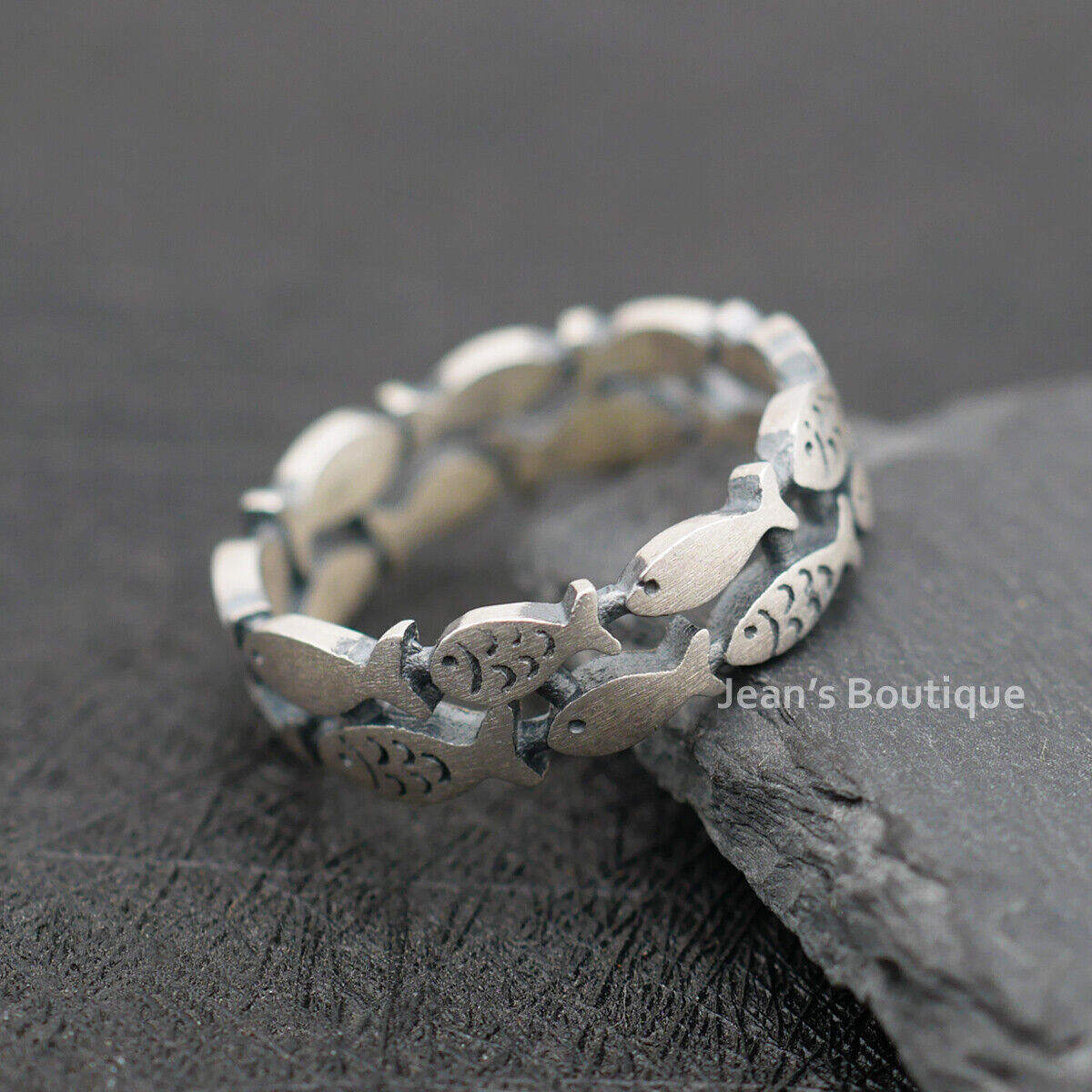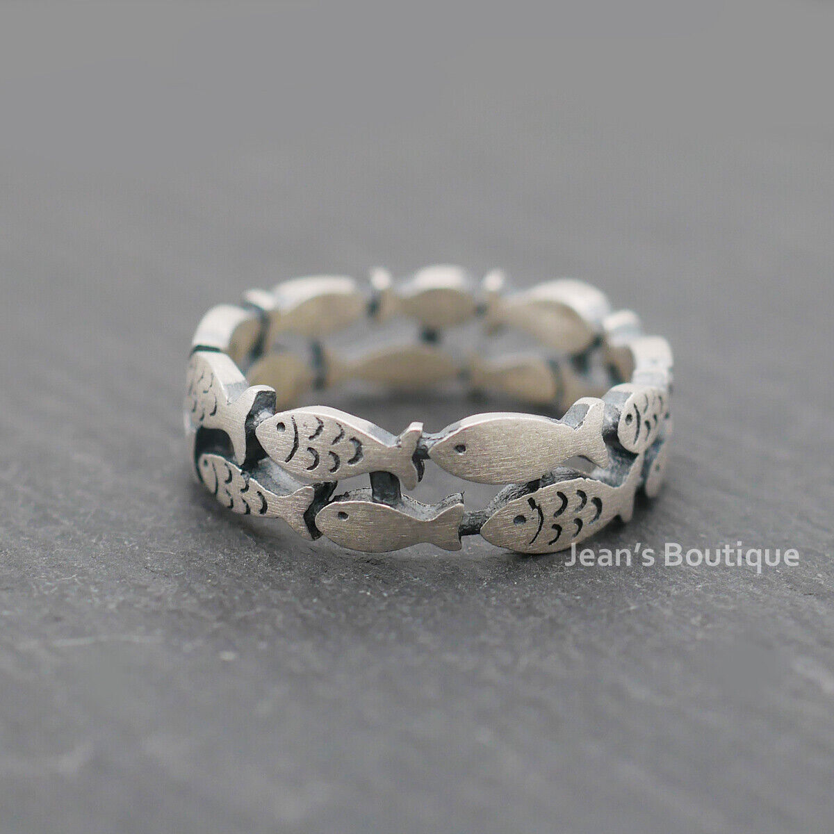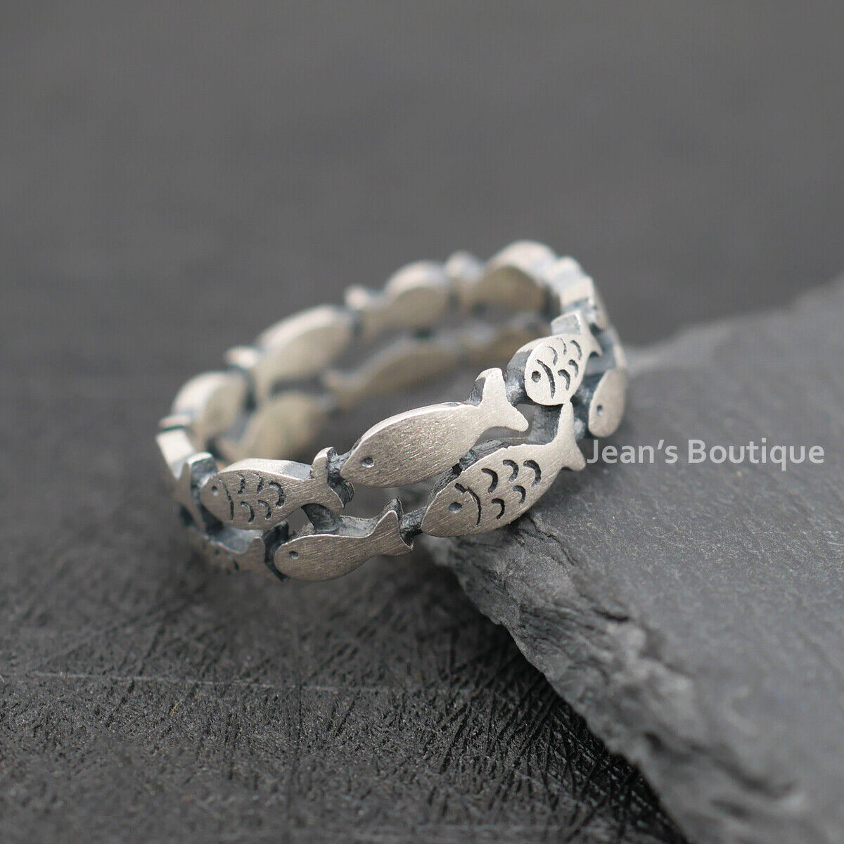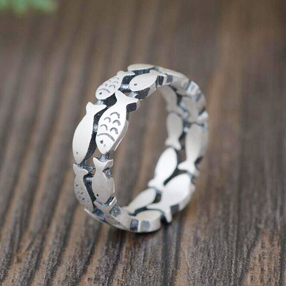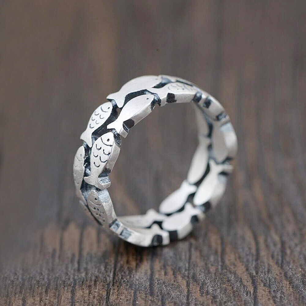 Retro Sterling Silver Fish Natural Double Layered Band Ring A3375-Matte