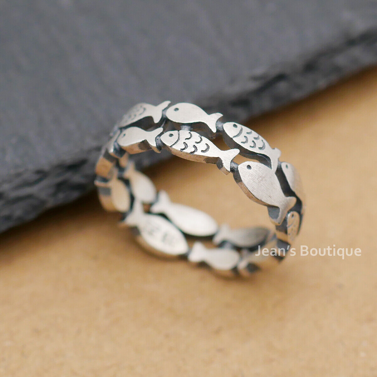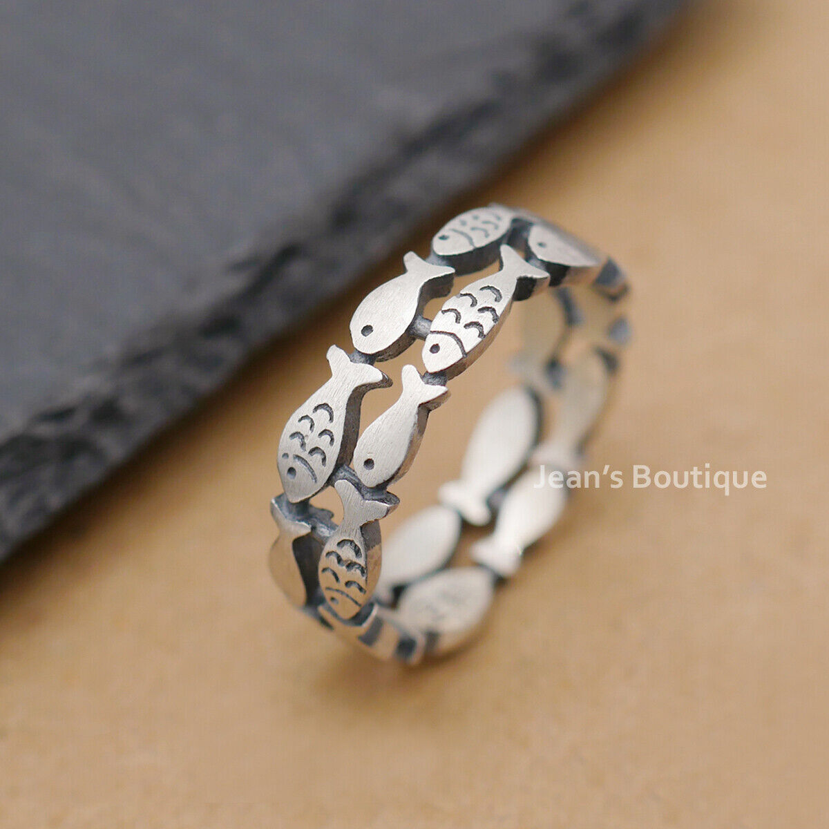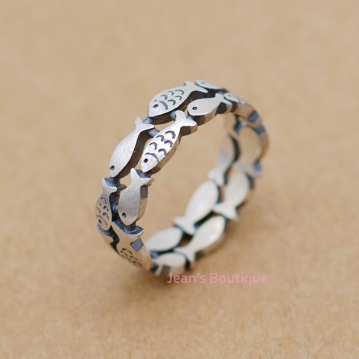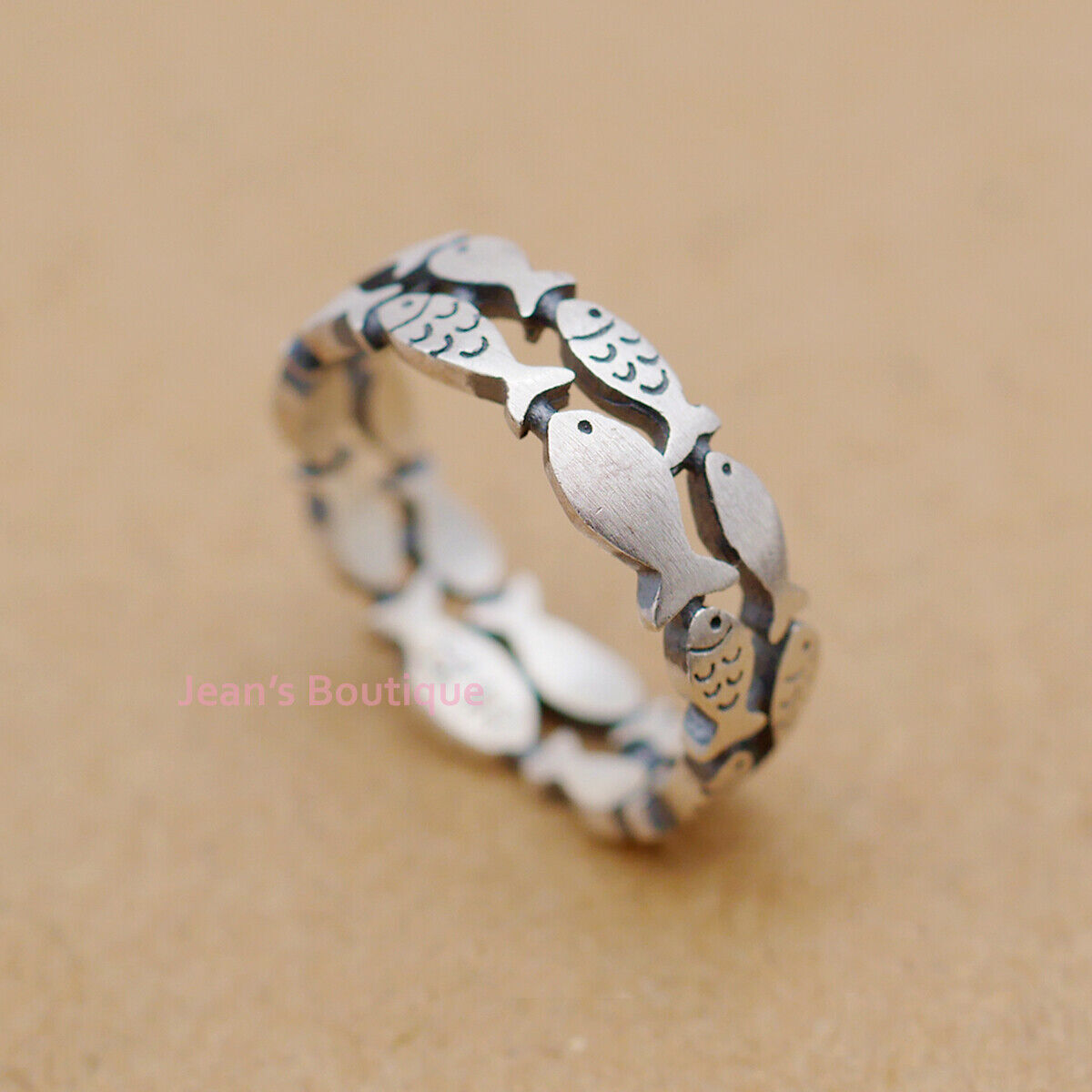 Retro Sterling Silver Fish Natural Double Layered Band Ring A3375-Matte