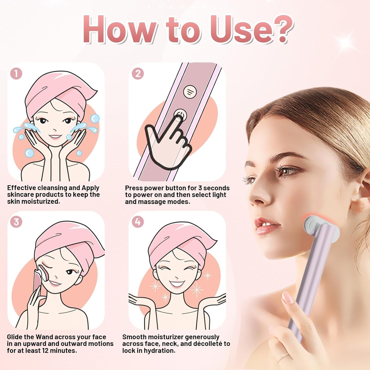 Red Light Therapy Wand for Face, 4 in 1 9 Colors 360 Rotating LED Face Wand