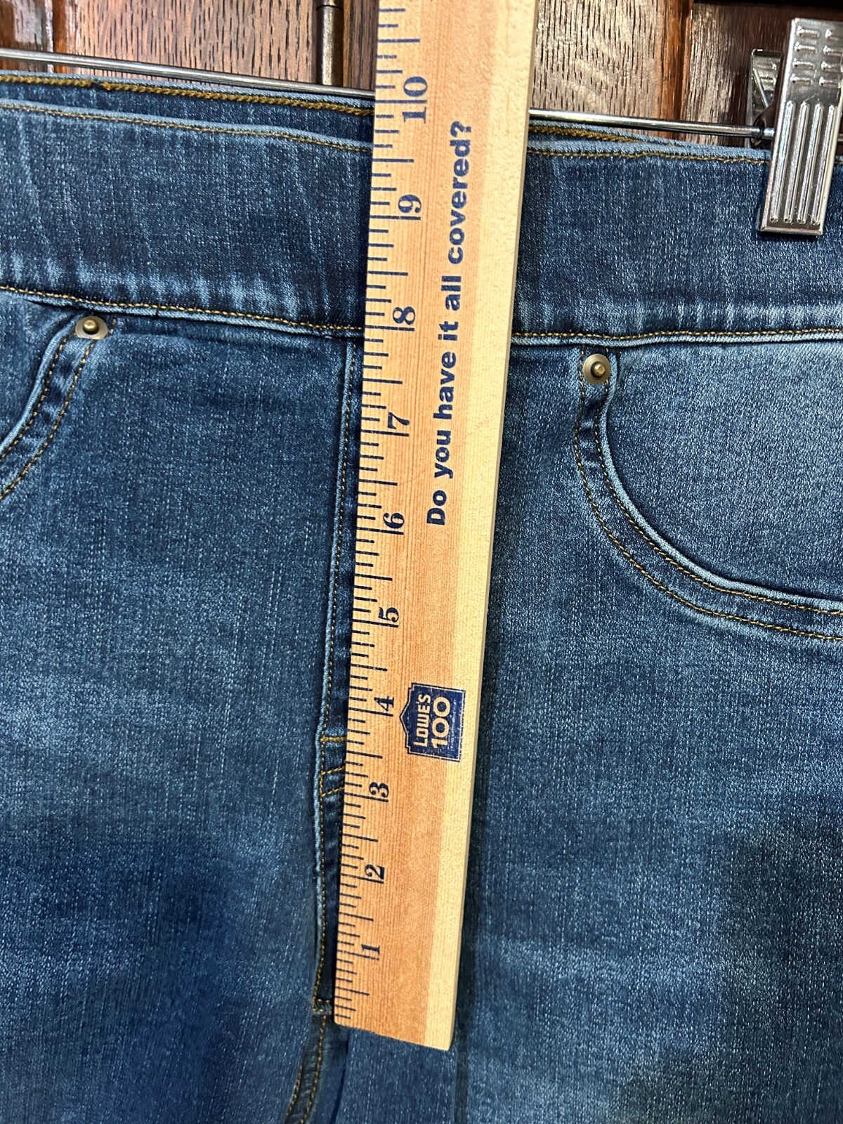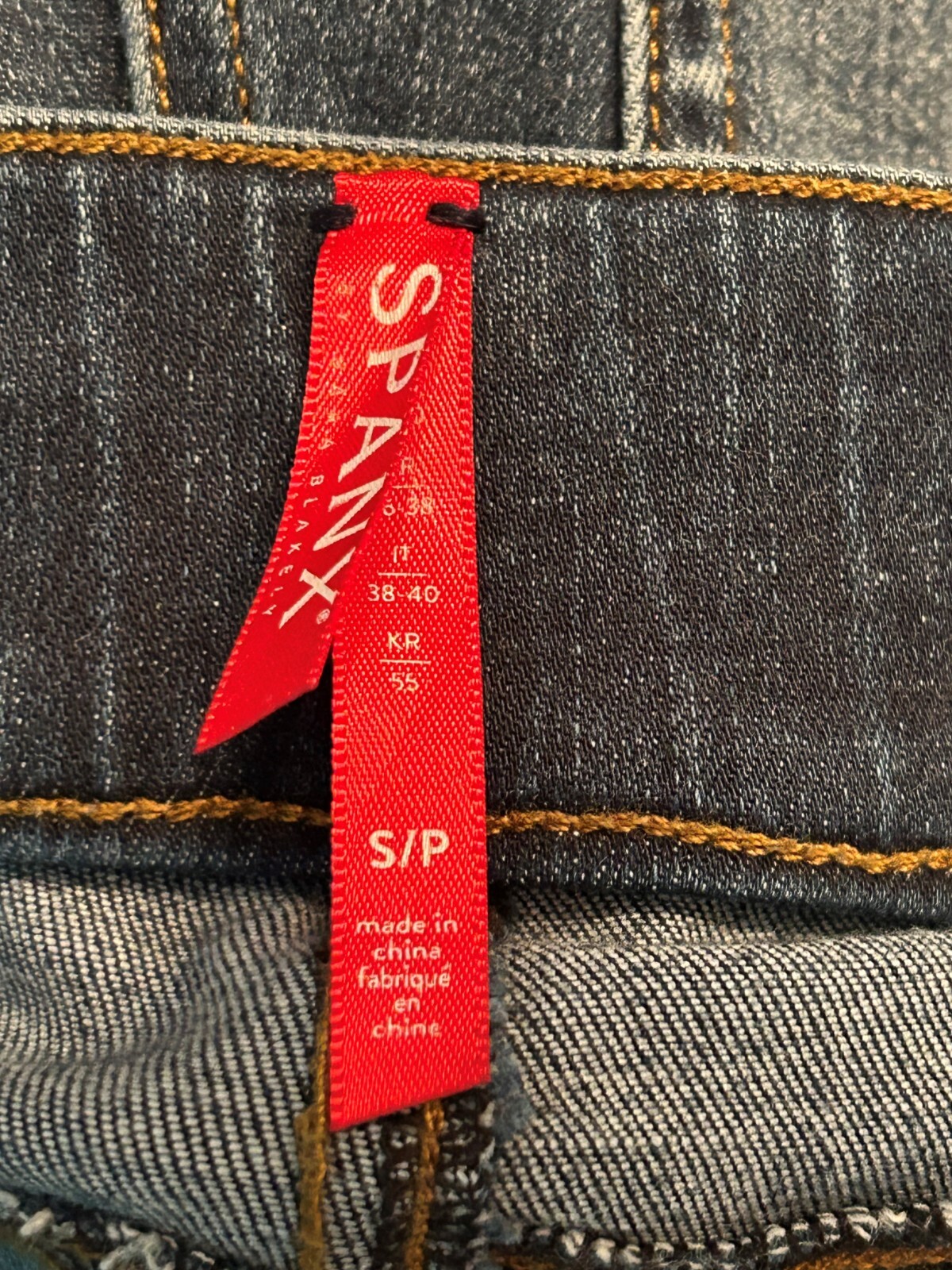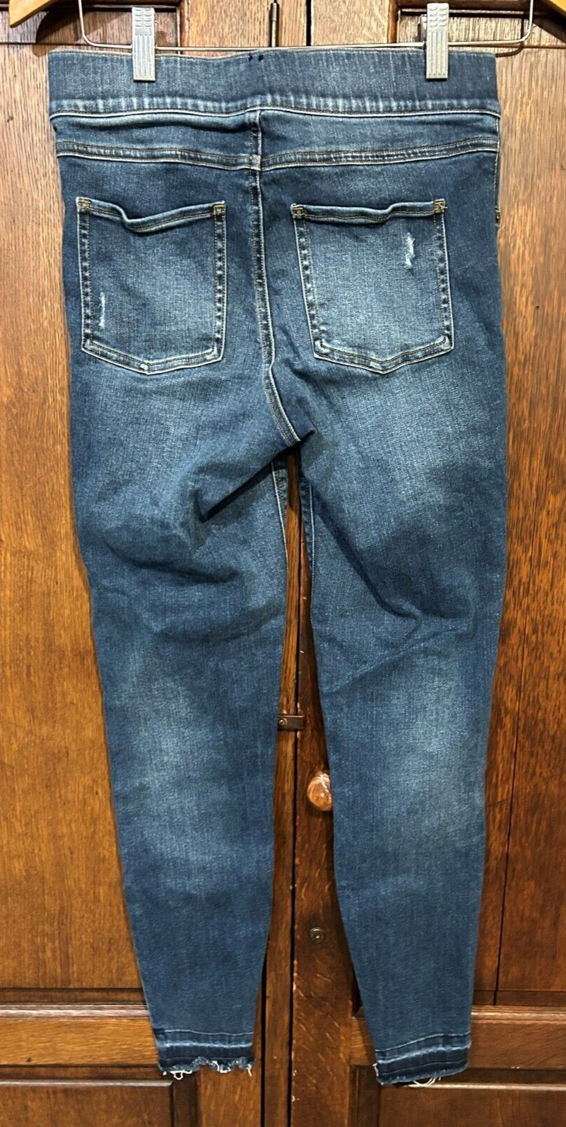 Spanx Jeans Womens Small Blue Ankle Skinny Mid Rise Raw Hem Distressed Pull On
