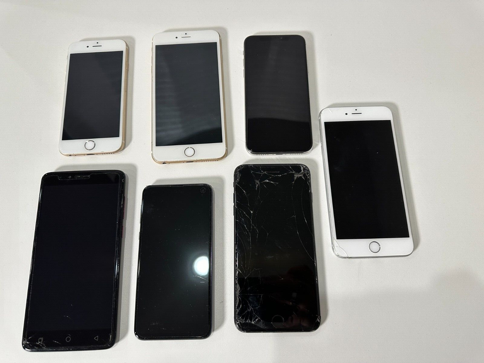 LOT Of 7 iPhone 6, 7, X, Galaxy S10E, REVVL Plus Assorted Conditions Read Desc