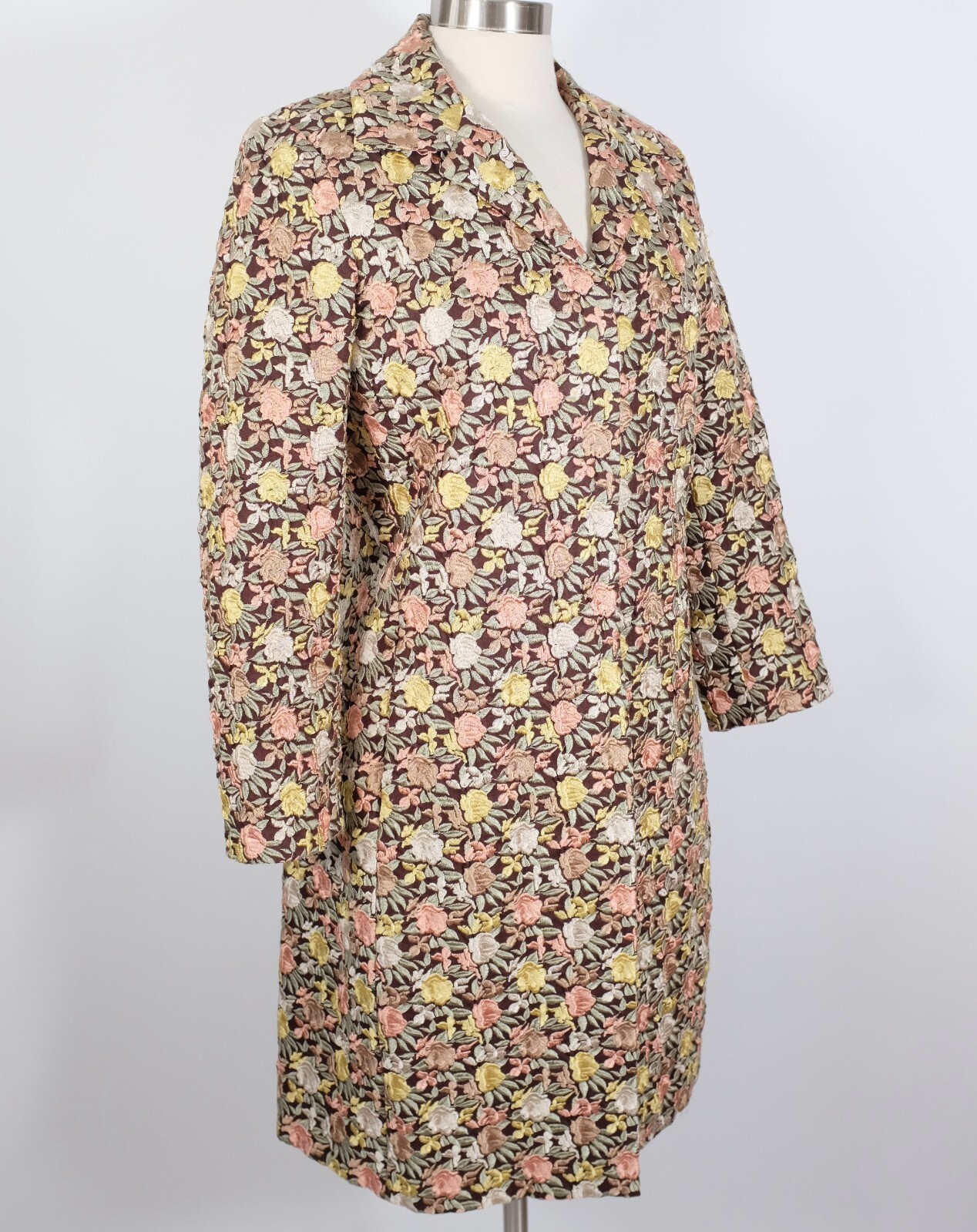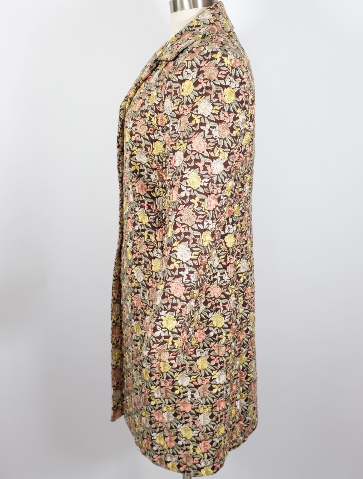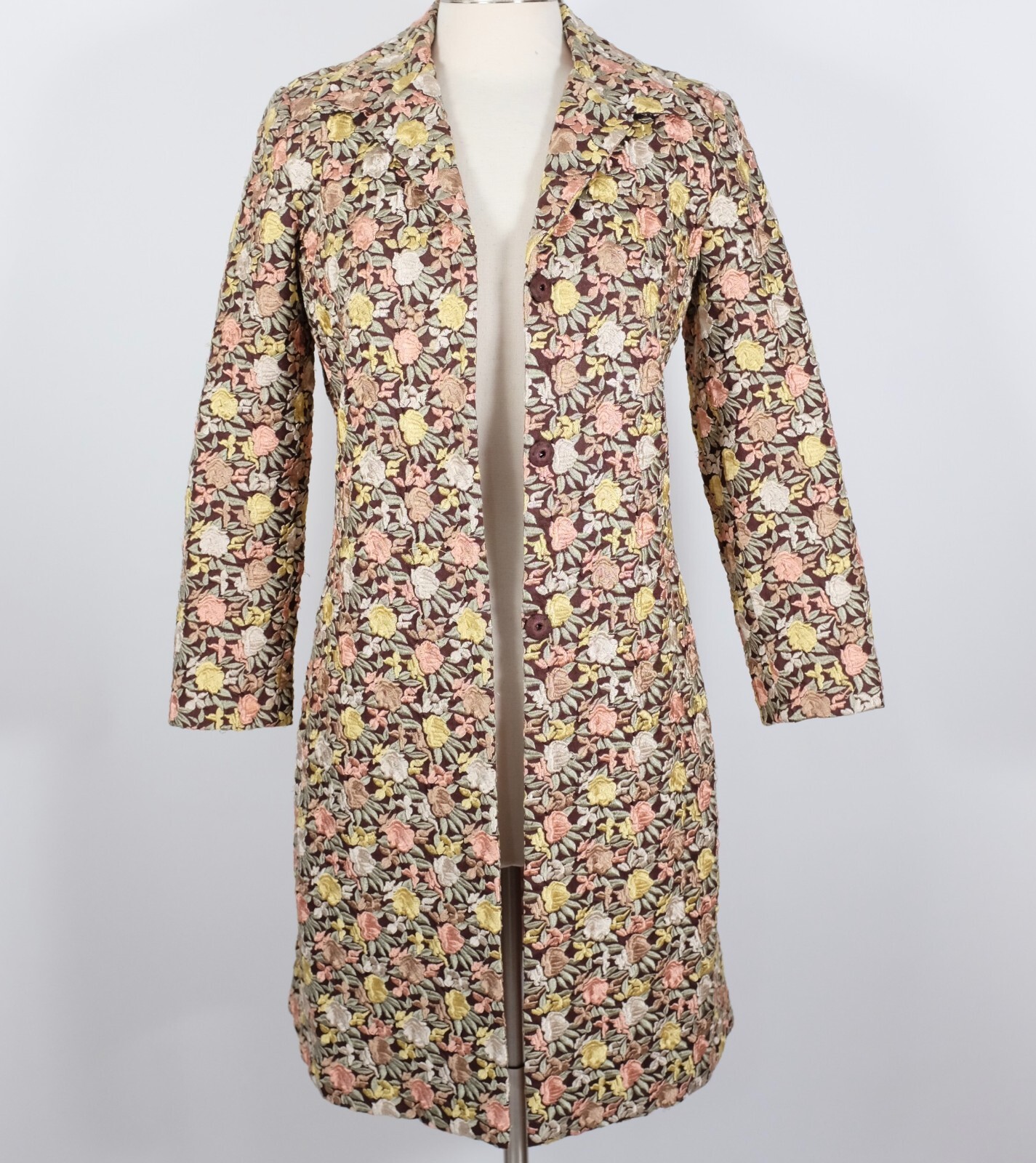 BIYA Johnny Was long coat jacket sz S linen floral roses embroidered brown