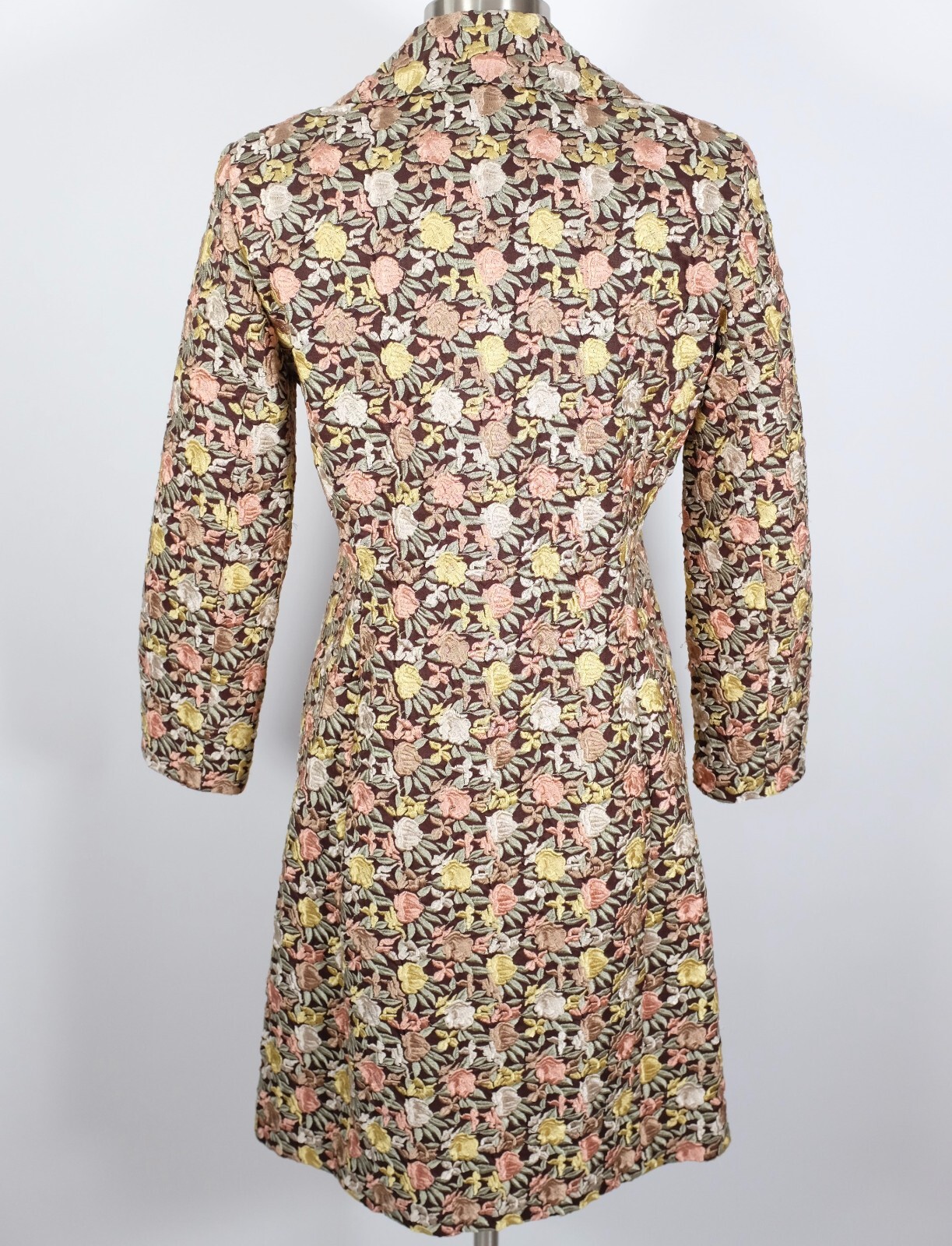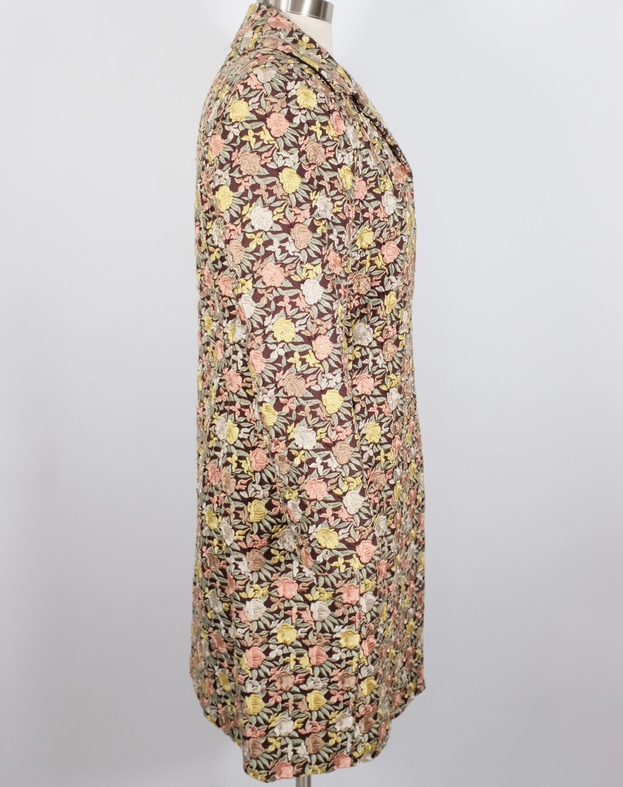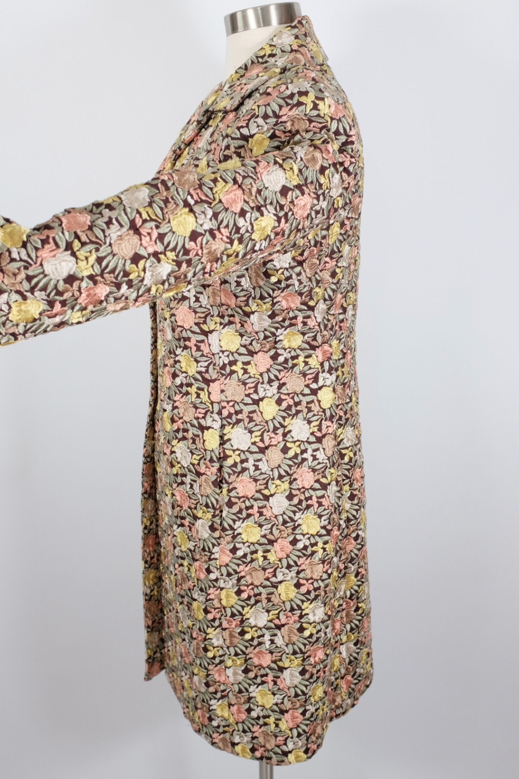 BIYA Johnny Was long coat jacket sz S linen floral roses embroidered brown