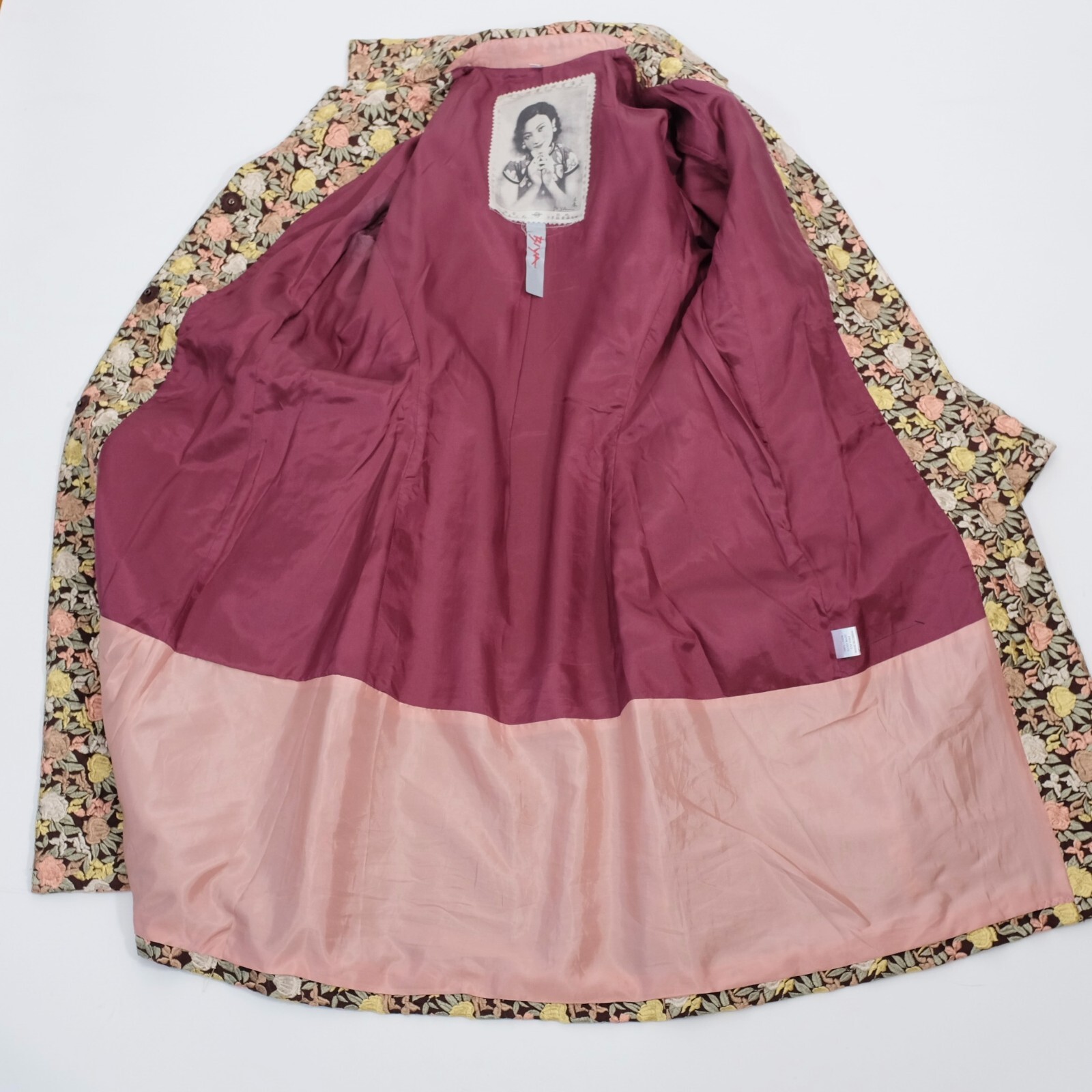 как выглядит BIYA Johnny Was long coat jacket sz S linen floral roses embroidered brown фото
