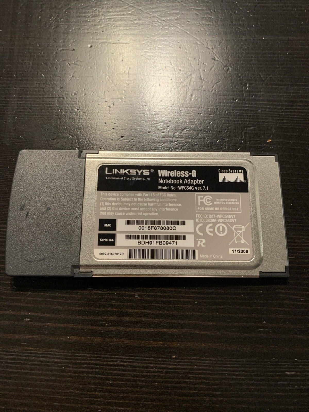 Linksys Wireless-G 2.4GHz Notebook Adapter PCMCIA WPC54G v2 802.11g