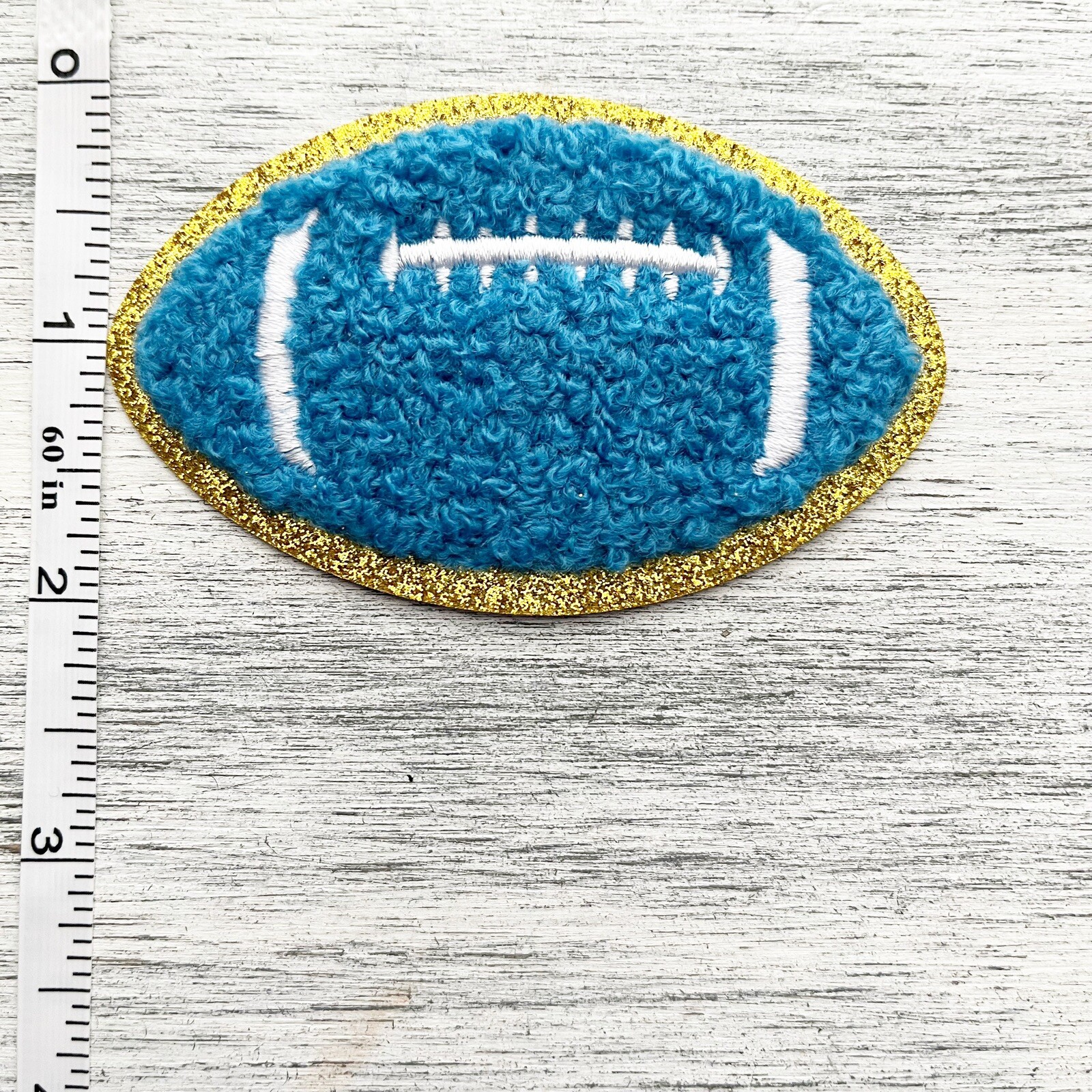 как выглядит Blue Football Gold Trim Iron On Patch фото