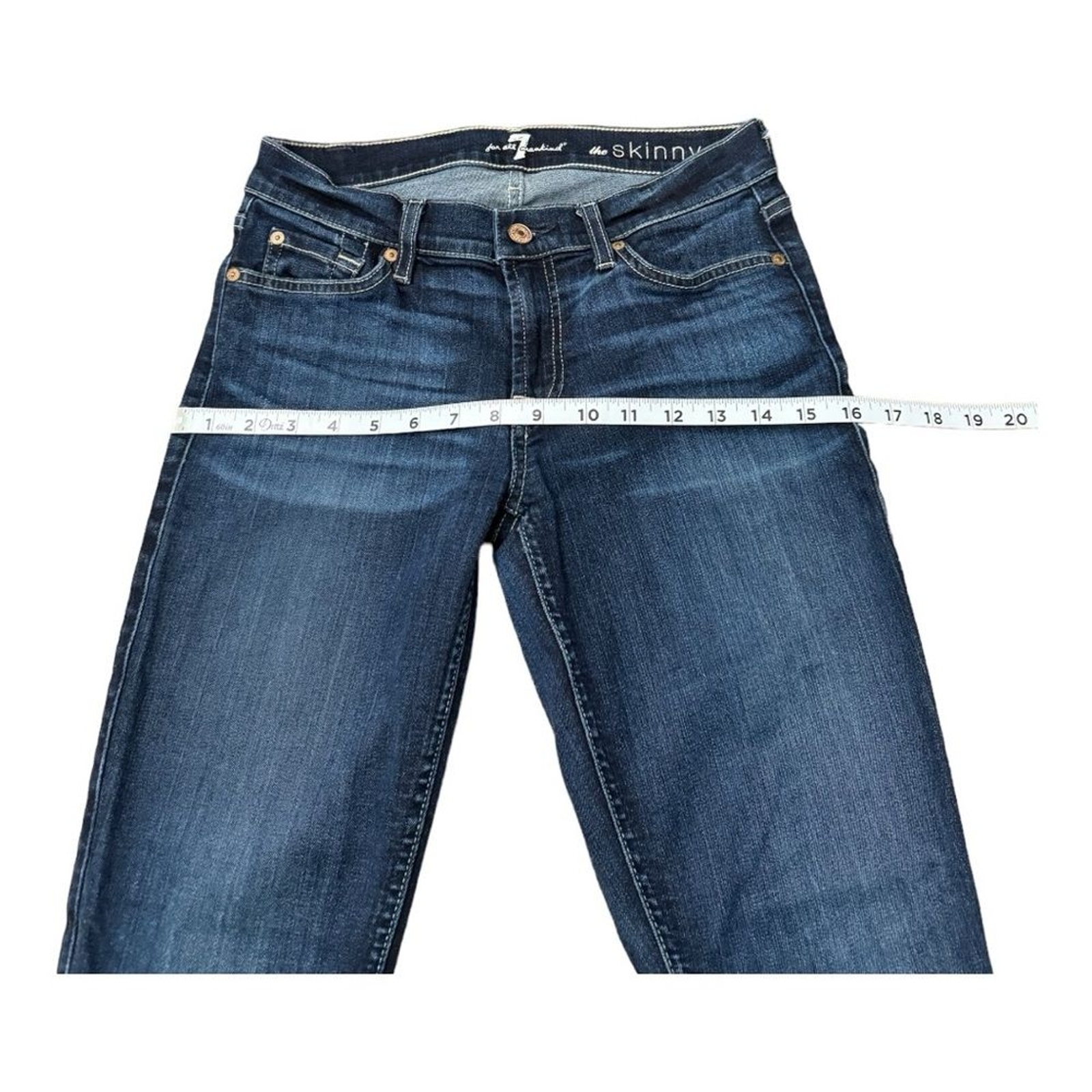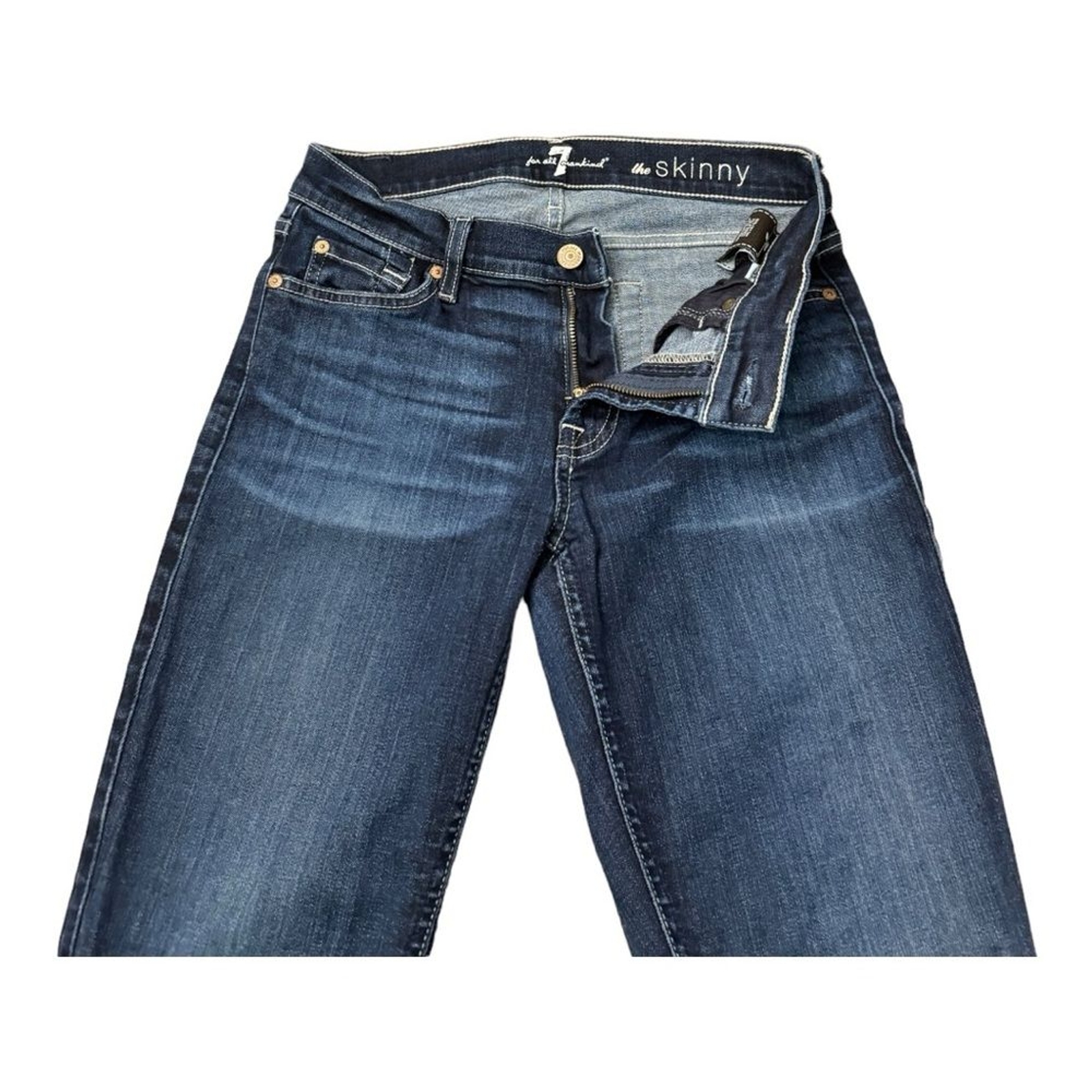 как выглядит 7 For All Mankind The Skinny Dark Wash Blue Denim Jeans Stretch Women s Size 27 фото
