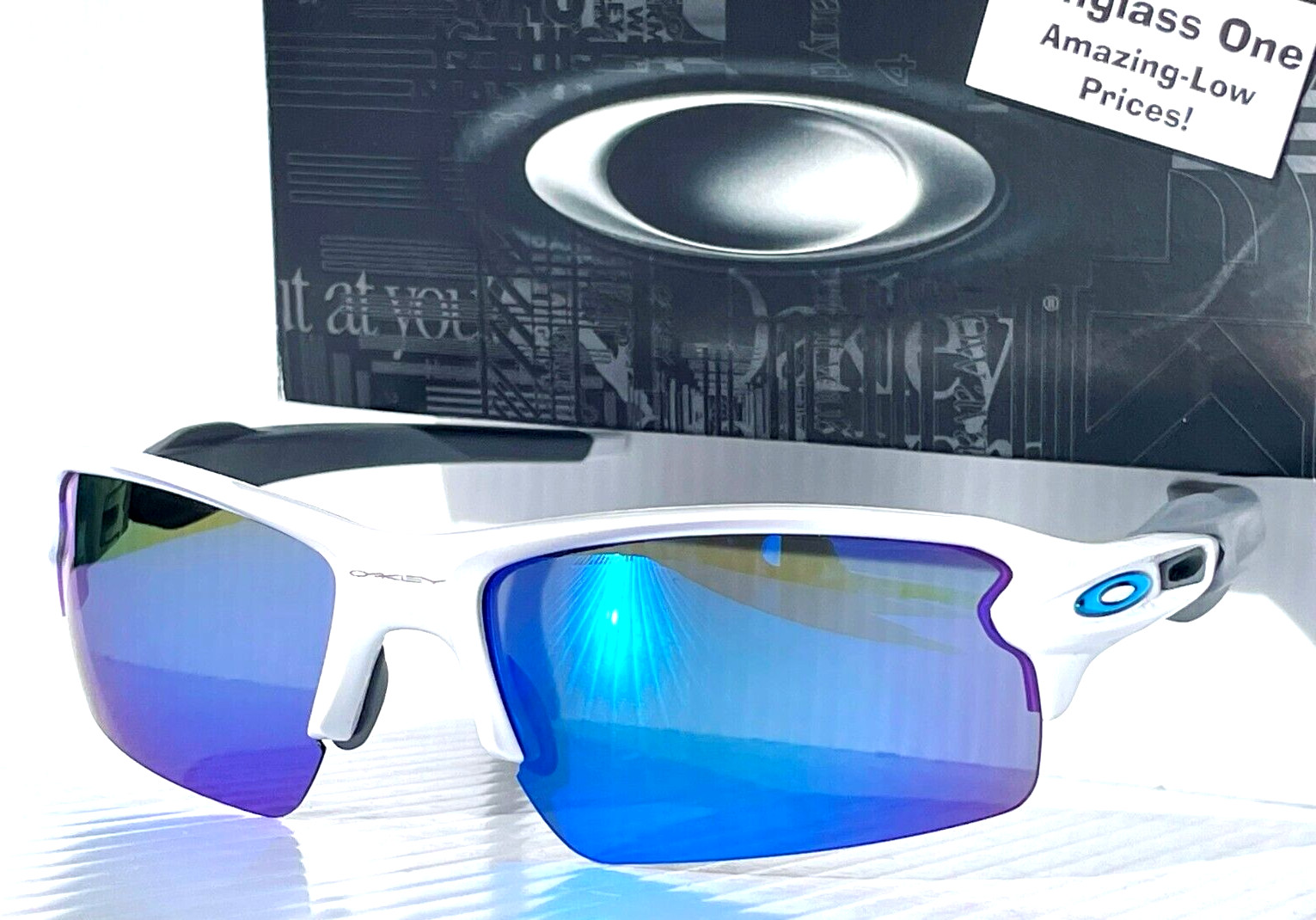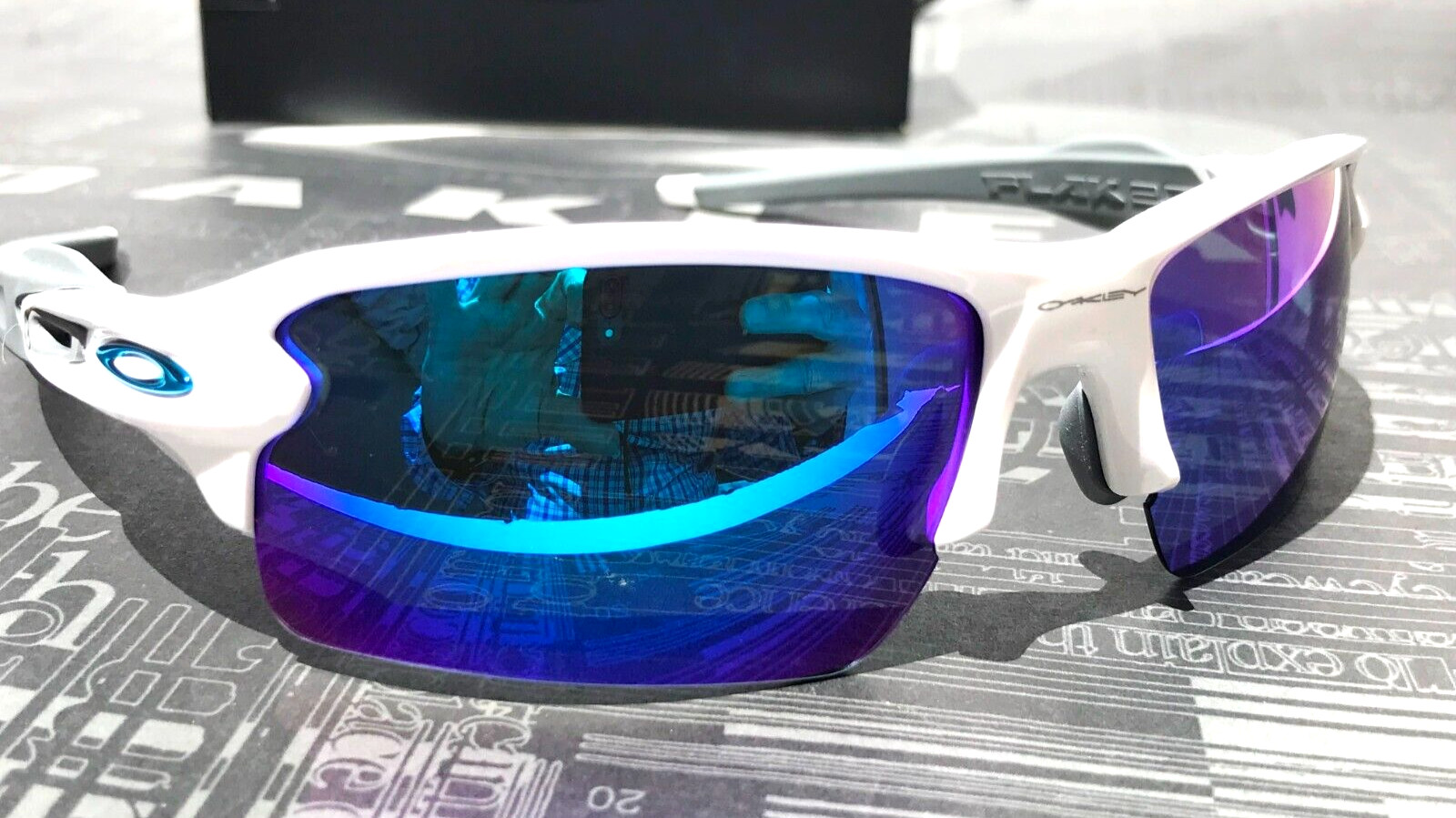 Oakley FLAK 2.0 Shiny White POLARIZED Galaxy Blue Lens Sunglass 9188-94