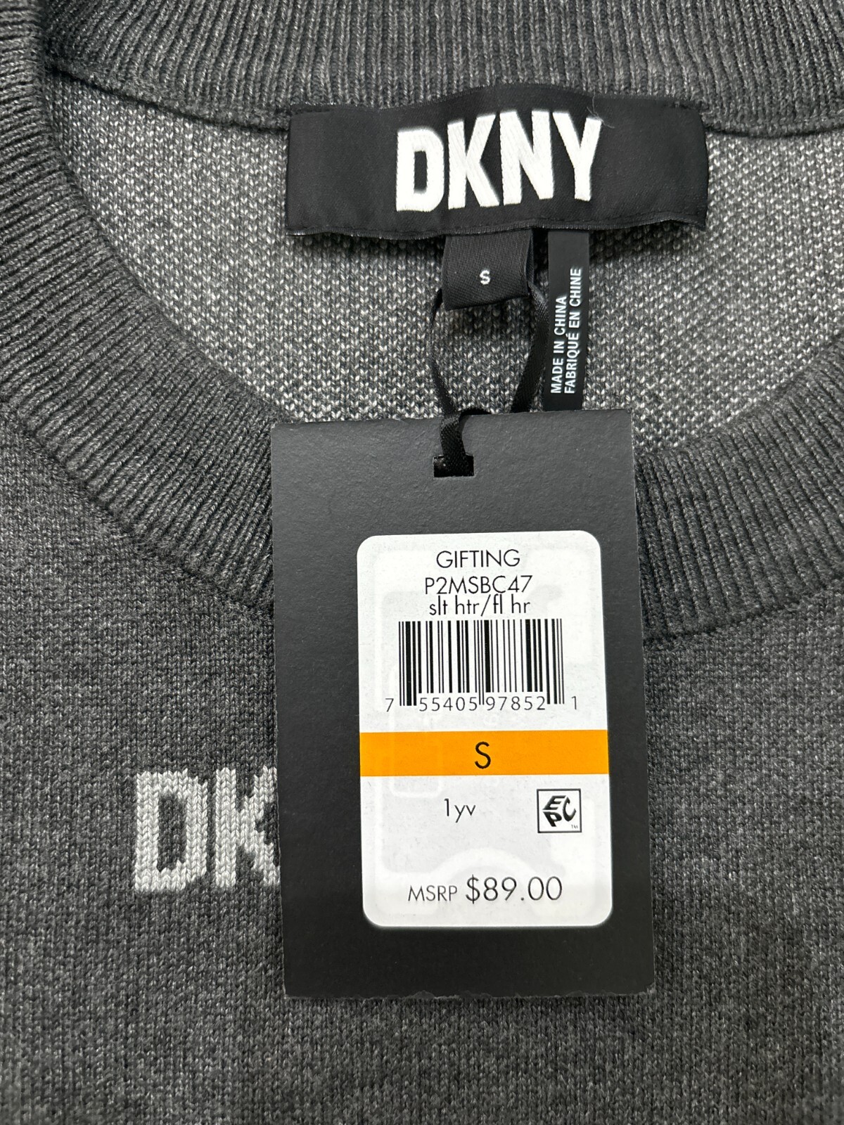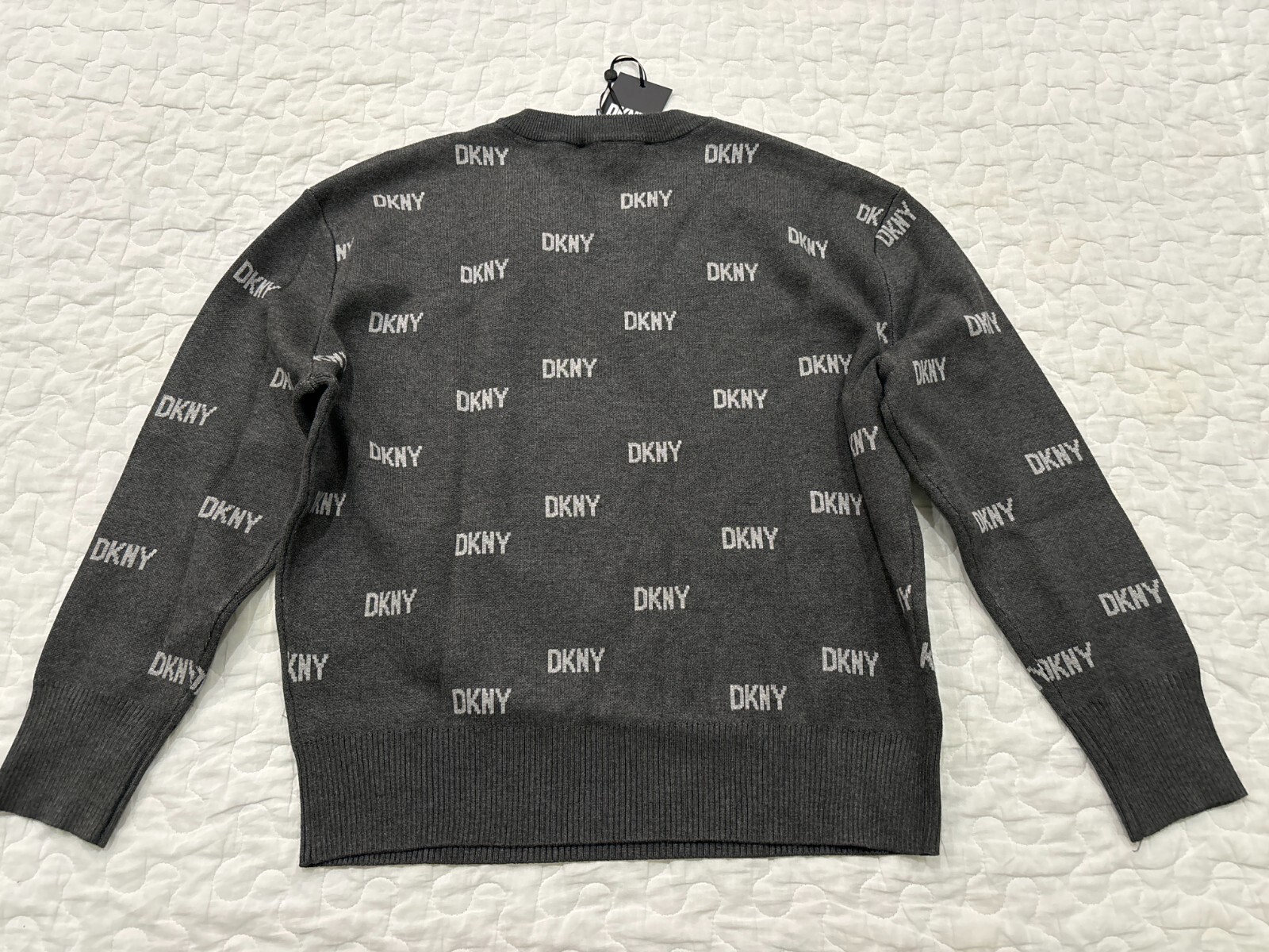 как выглядит DKNY womens Logo knit sweater gray/S фото