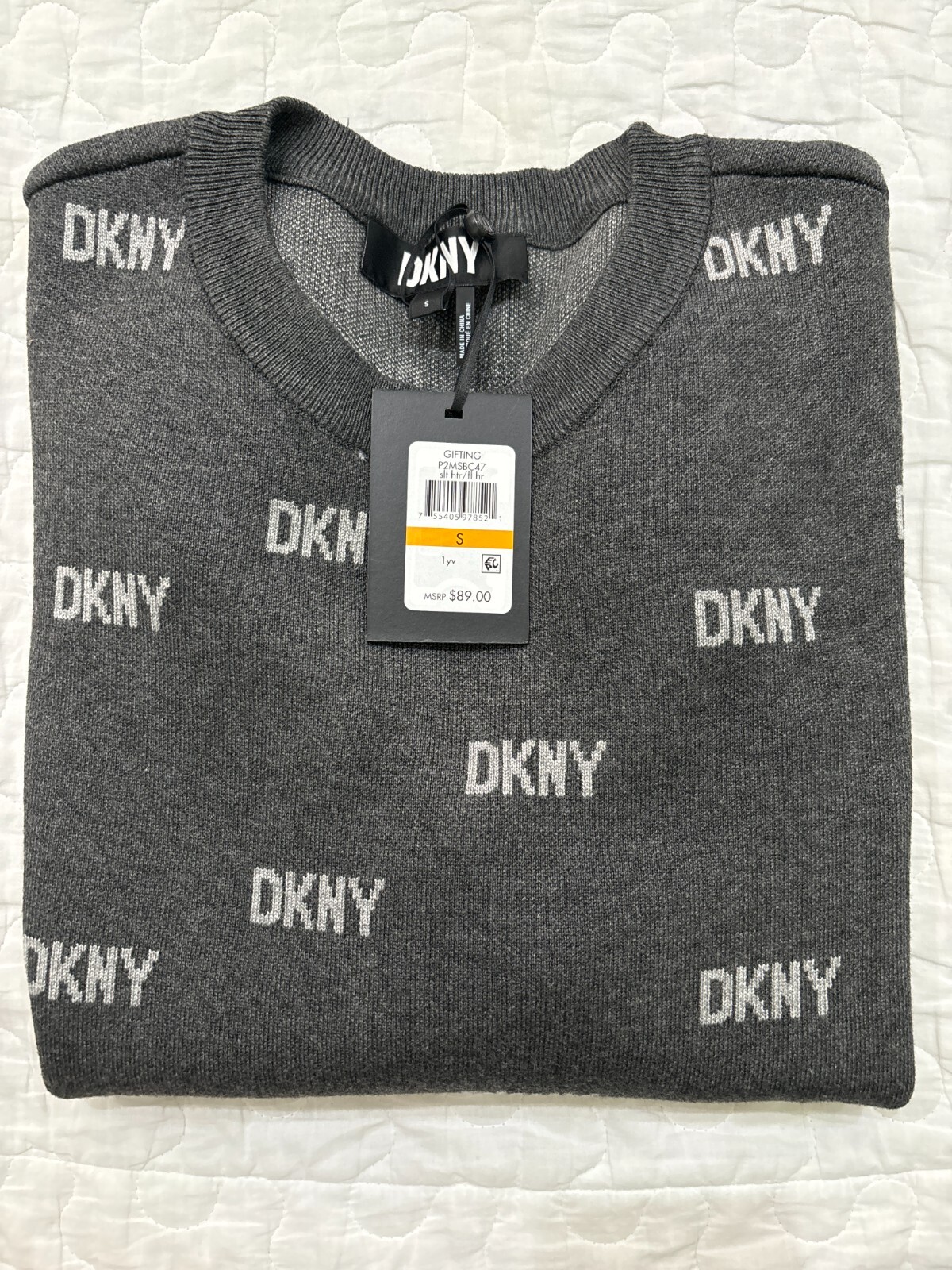 DKNY womens Logo knit sweater gray/S