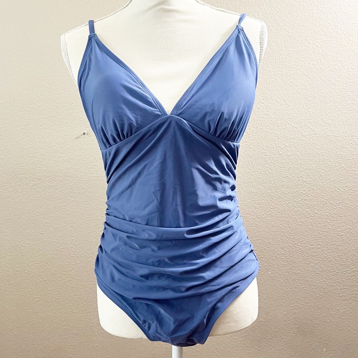 NWT Blue shirring tummy control one piece swimsuit size large
