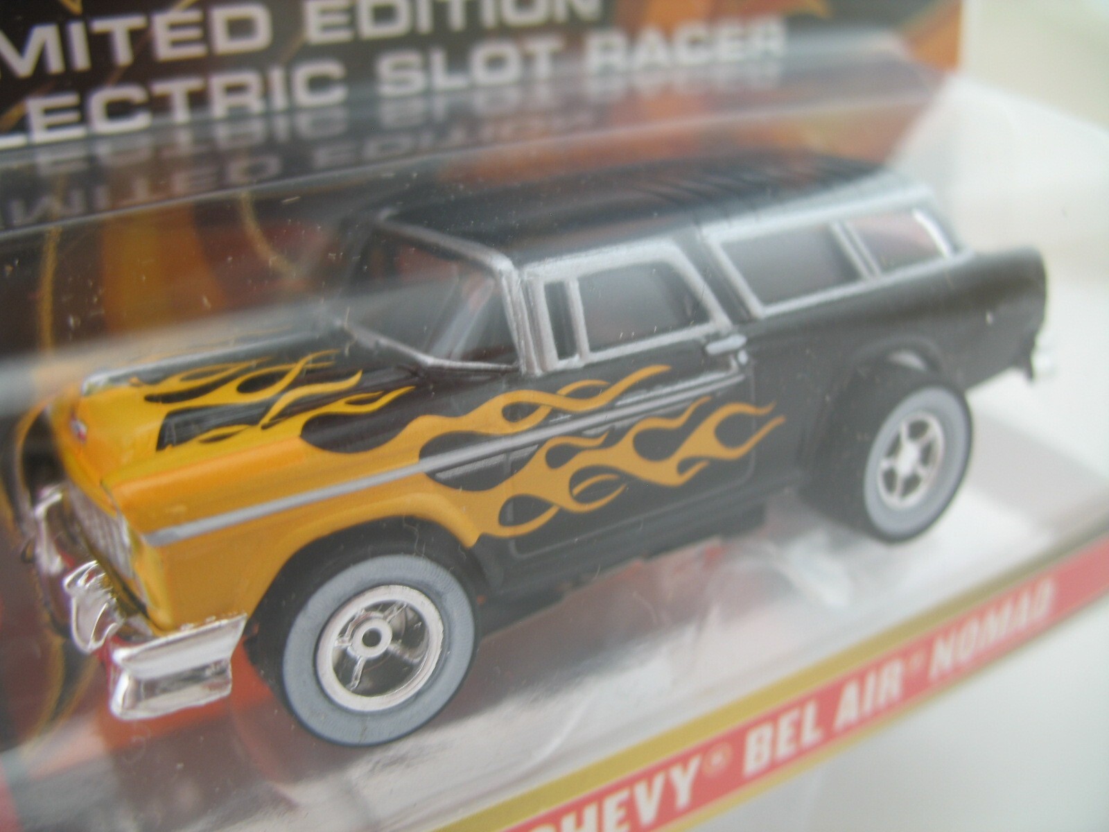 как выглядит Auto World Xtraction HO Slot Car: 1955 Chevy Bel Air Nomad, Yellow Flames, MOC фото