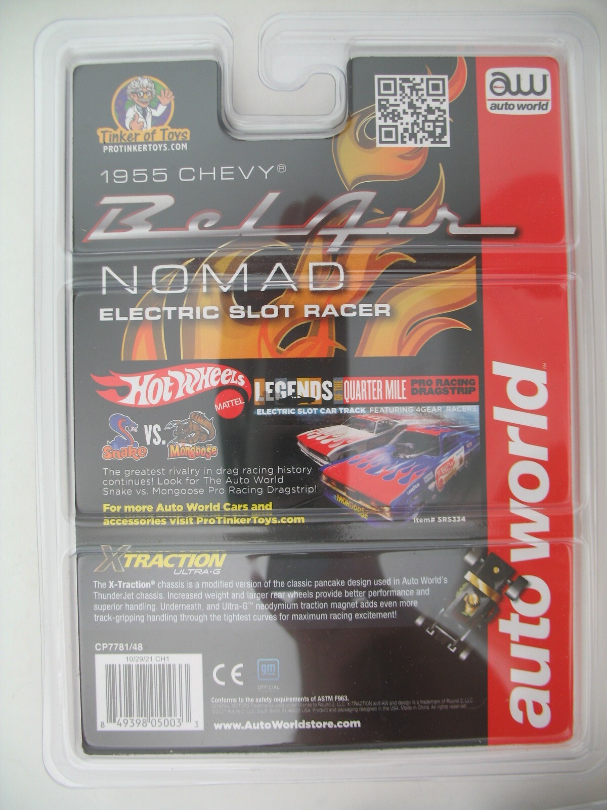 Auto World Xtraction HO Slot Car: 1955 Chevy Bel Air Nomad, Yellow Flames, MOC