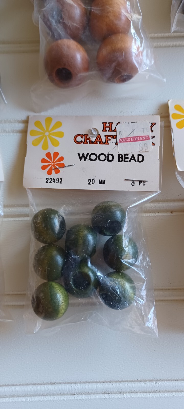 Vintage WOOD Beads LOT, 60s 70s DEADSTOCK Hippie Macrame Craft beads