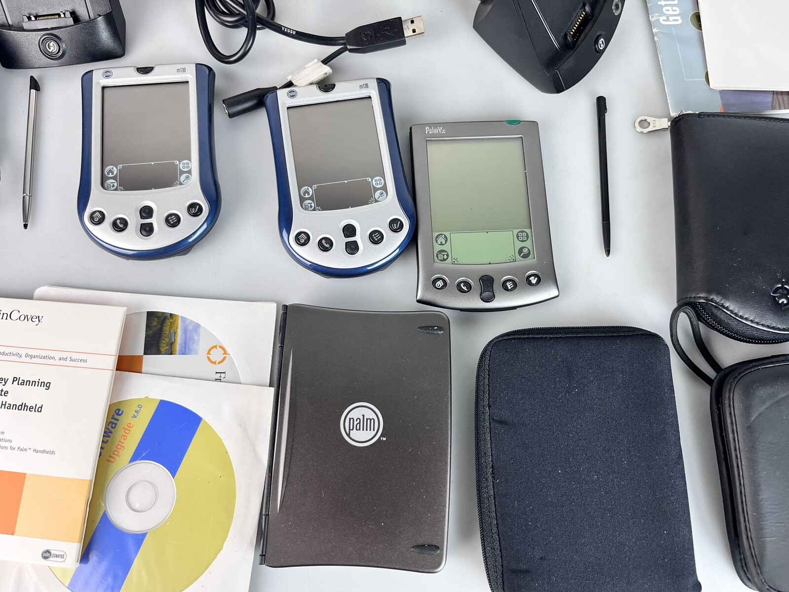 Lot of 3 Vintage PalmOne Vx Handheld Pilot m130 w/ w Doc Stations, Keyboard