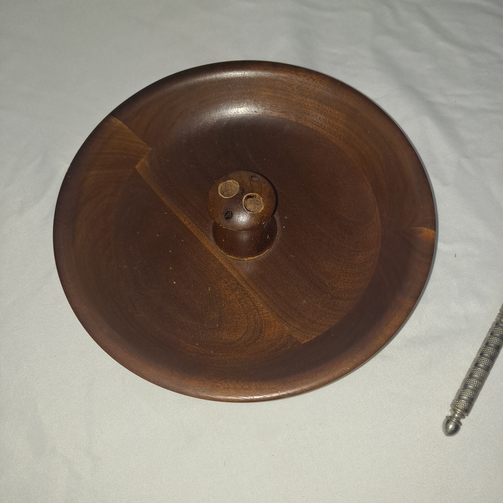 как выглядит Vermillion Solid Walnut Nut Bowl W/ Cracker and Picks MCM фото
