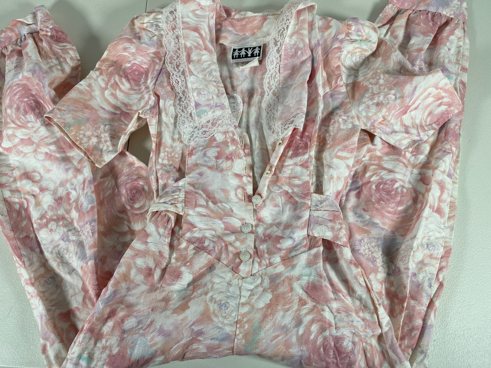 Disorderly Kids Girls Jumpsuit Size 10 Pink Floral Print Button Up Ruffle Lace