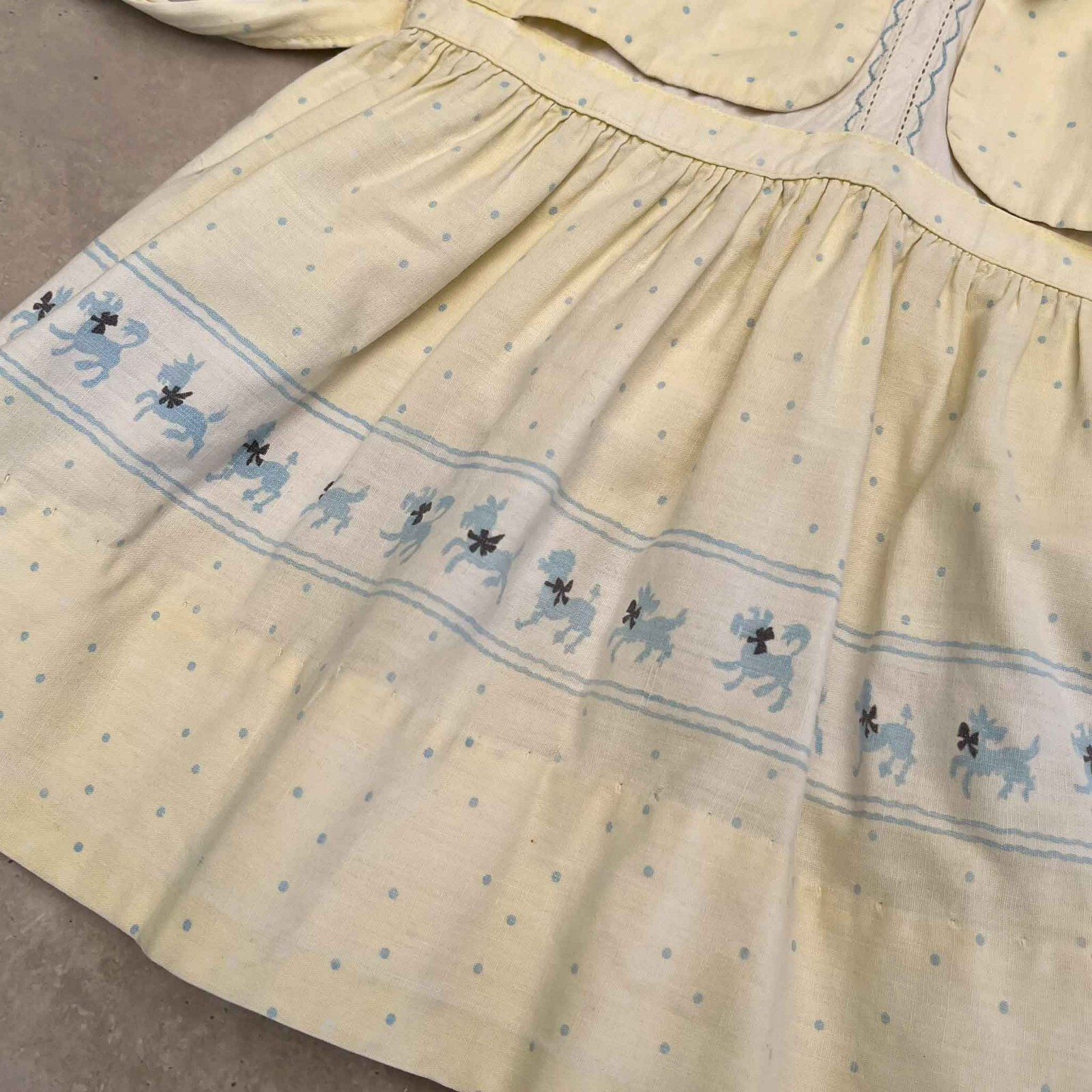 Vtg 50s Nanette Novelty Dog Print Yellow Cotton Puff Sleeve Toddler Girls Dress
