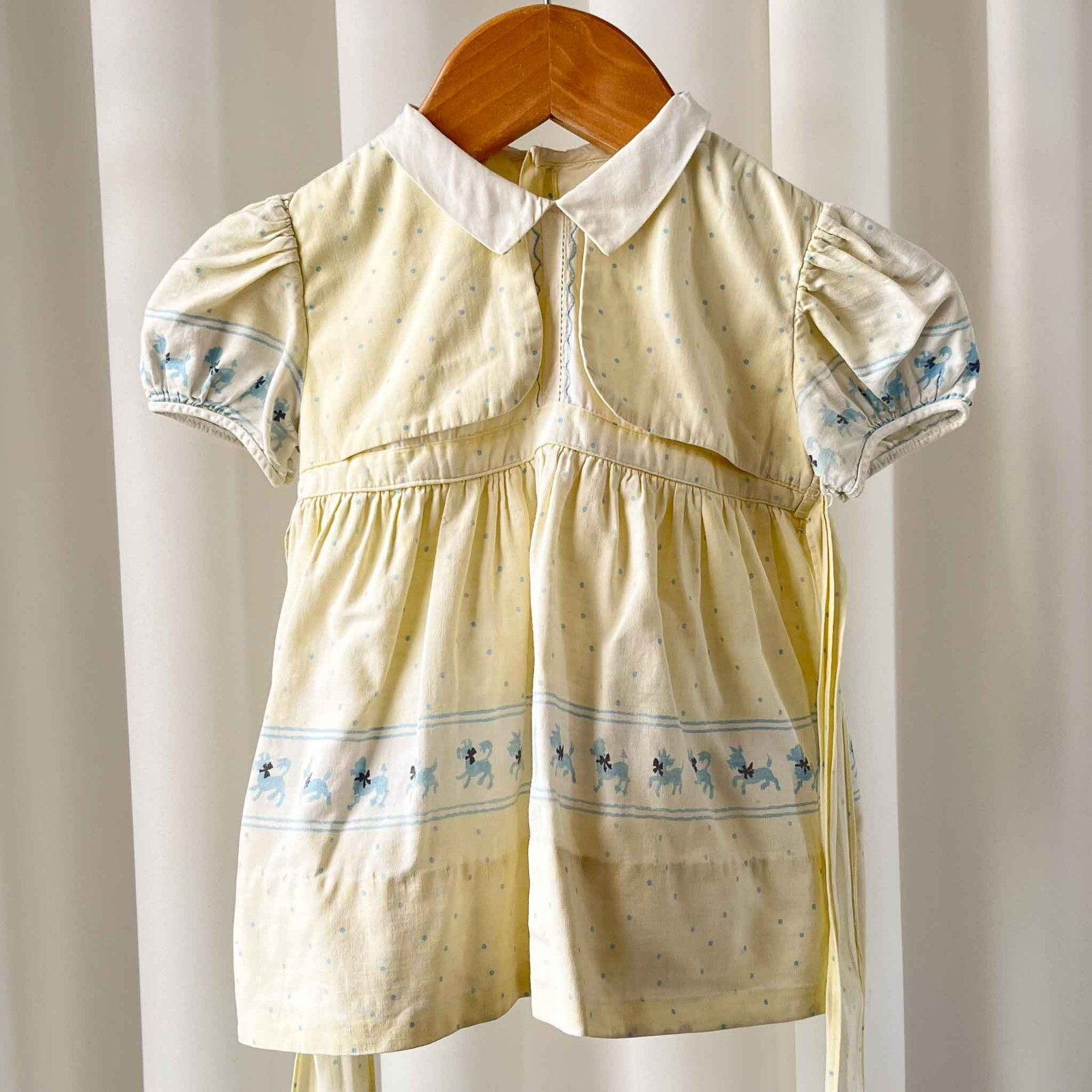 как выглядит Vtg 50s Nanette Novelty Dog Print Yellow Cotton Puff Sleeve Toddler Girls Dress фото