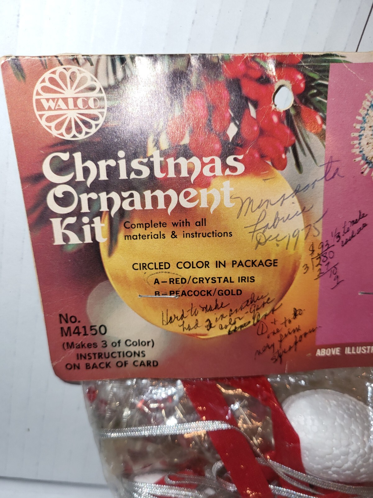 1973 Walco Christmas Ornament Kit Sequins Push Pin Craft Makes 3 No. M4150 Red
