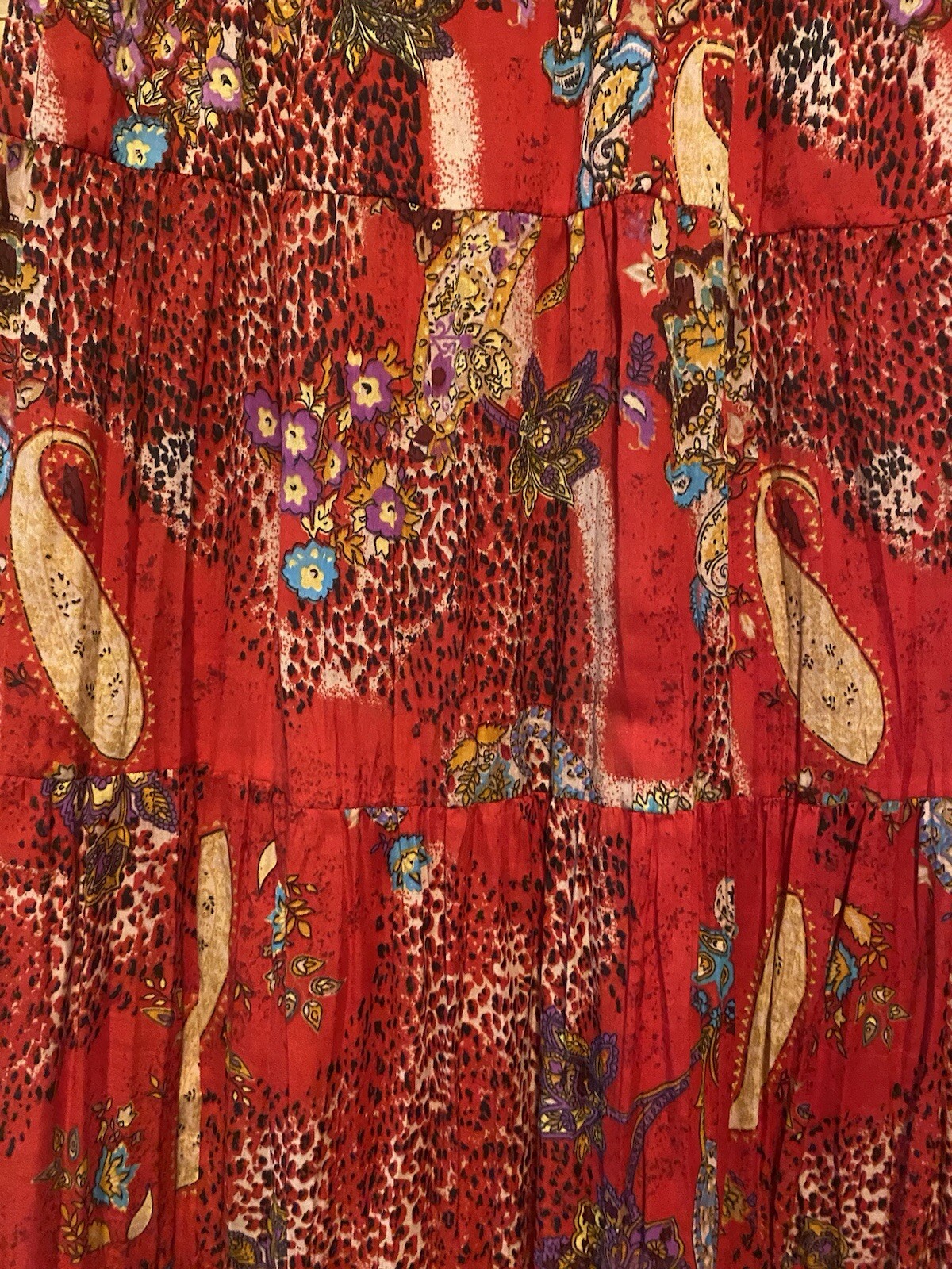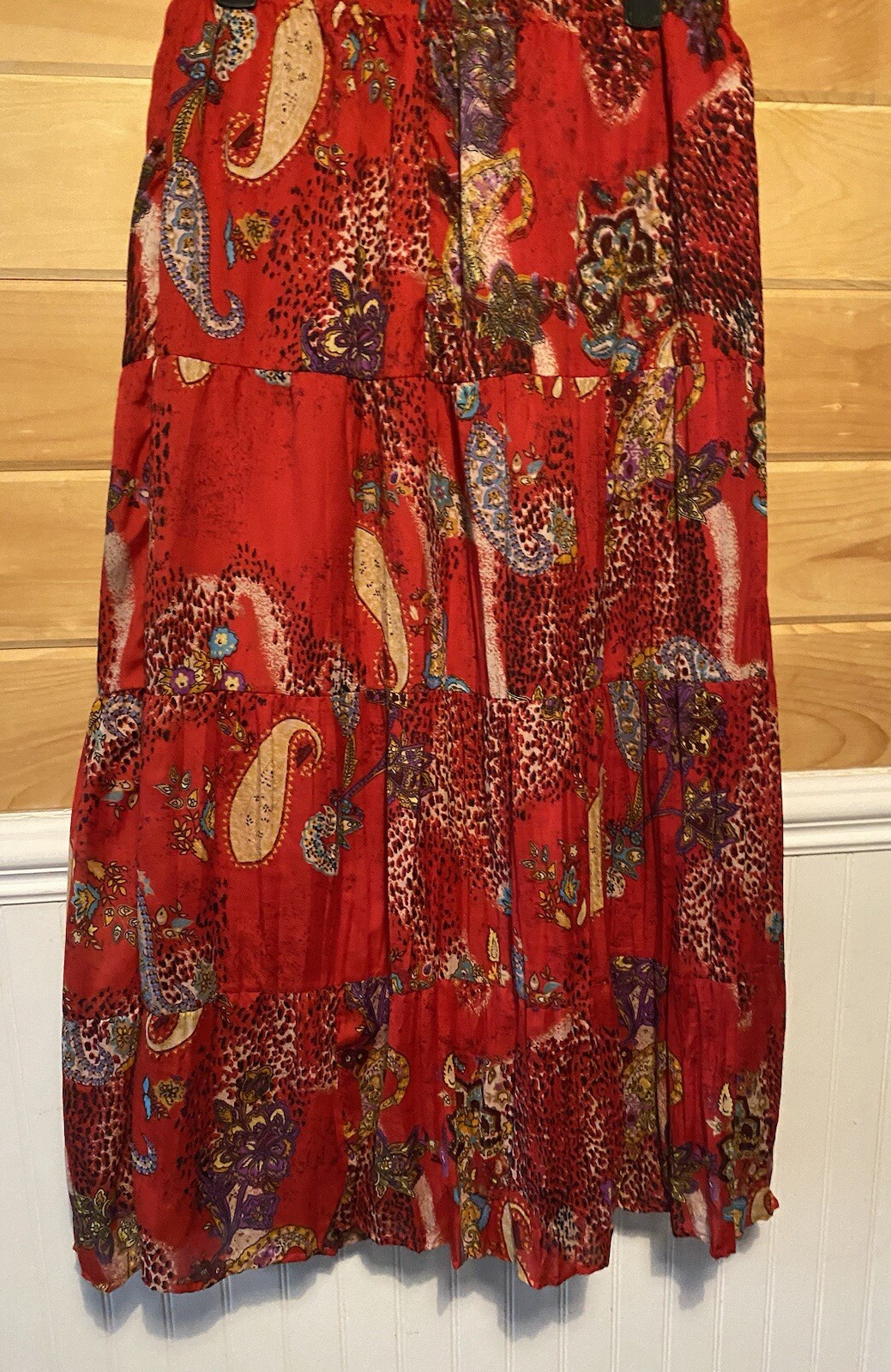 как выглядит VTG Bobbie Brooks Red Paisley Maxi Tiered Peasant Skirt Med фото
