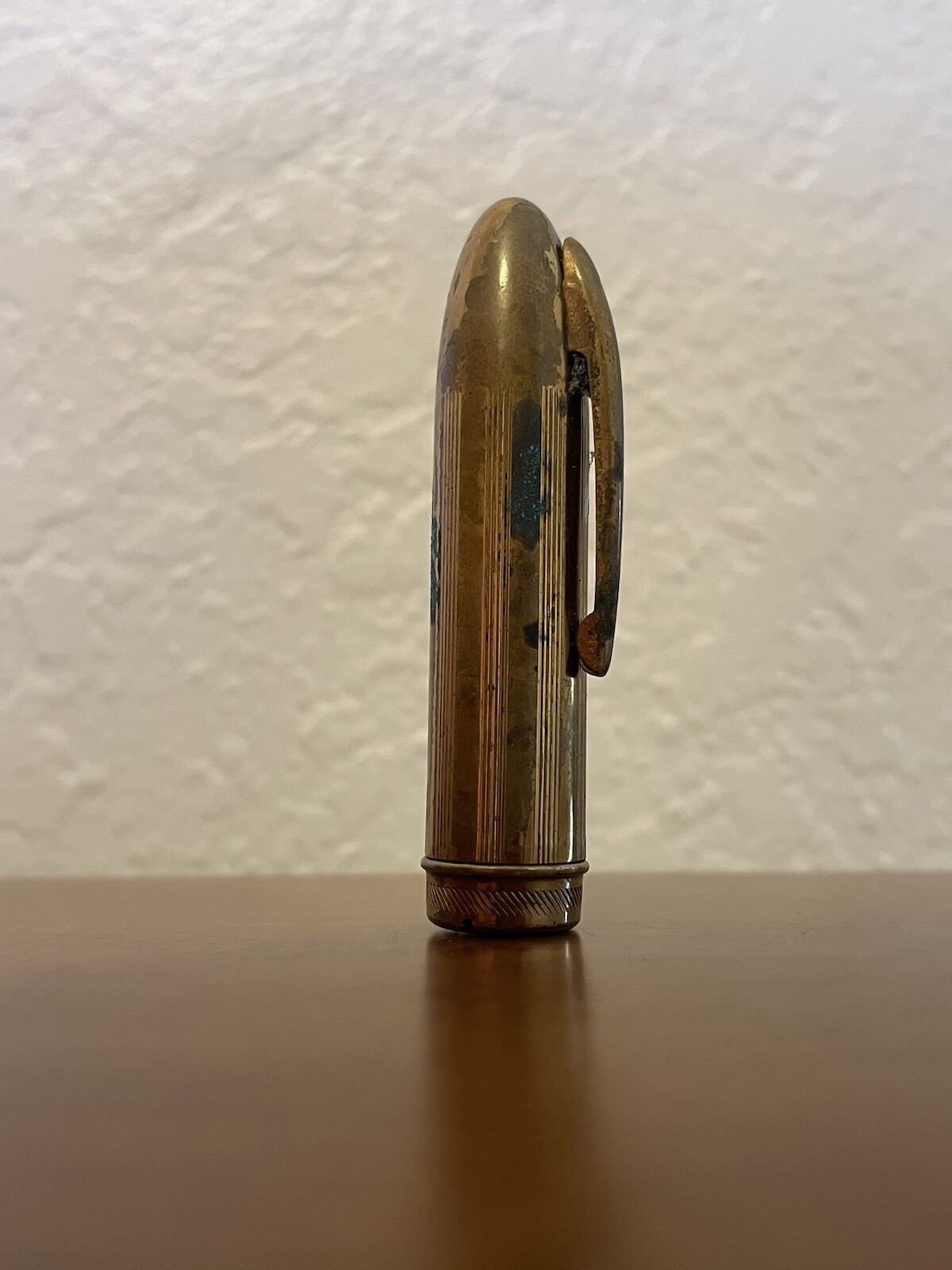 как выглядит Vintage Retractable Lens Brush in Lipstick-Style Metal Brass Case 2.25 фото
