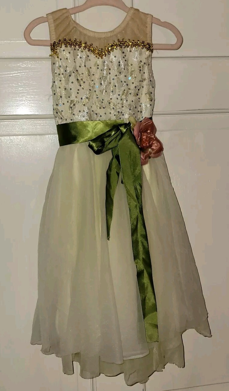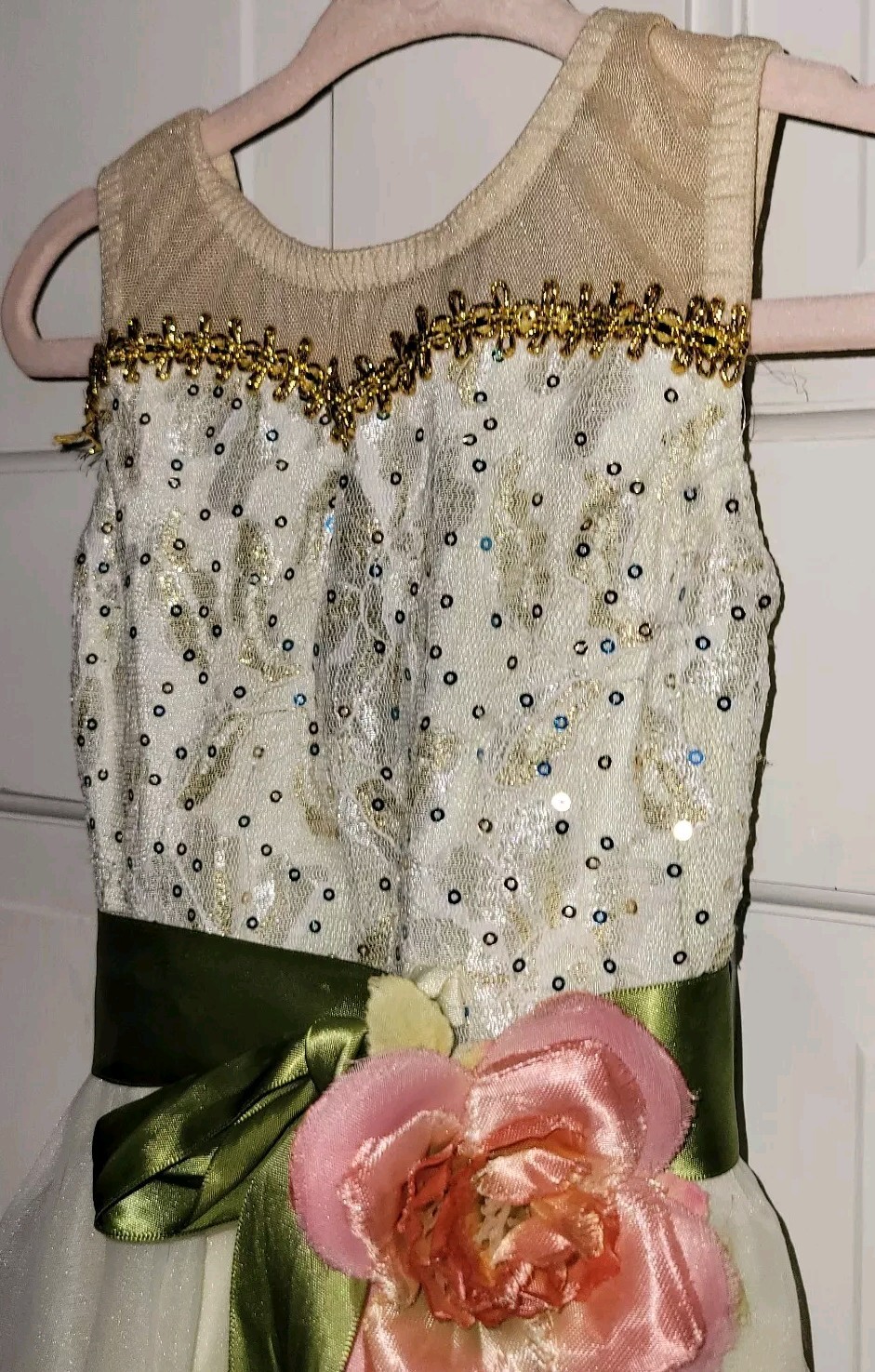 как выглядит COSTUME GALLERY White Chiffon Green pink Flower Sash Ballet Dance Dress Childs M фото