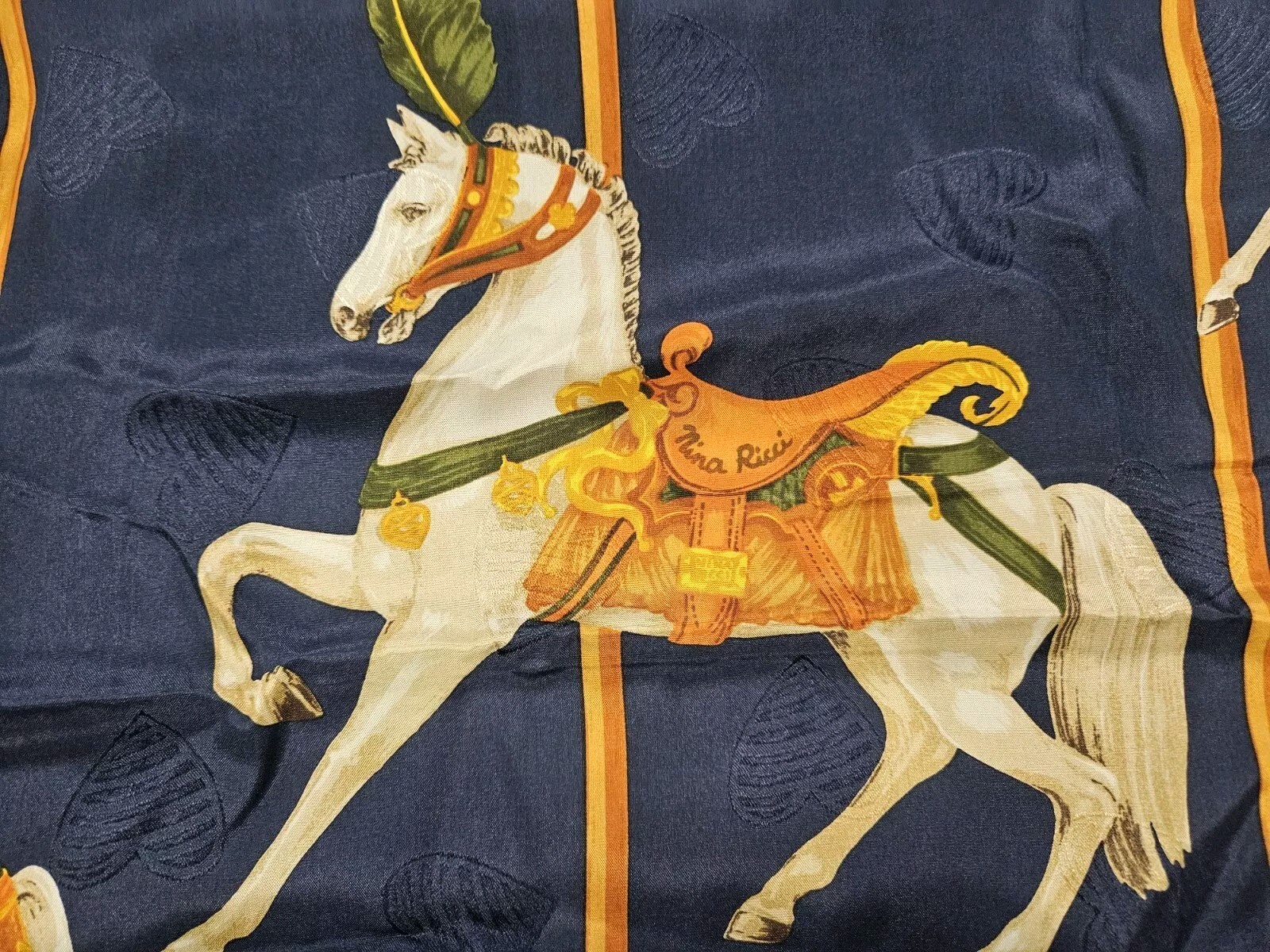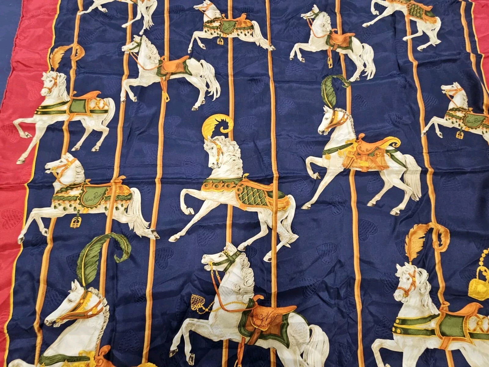 как выглядит Vintage Nina Ricci Equestrian Love Heart France Silk Scarf Red, Blue, Gold 34x33 фото