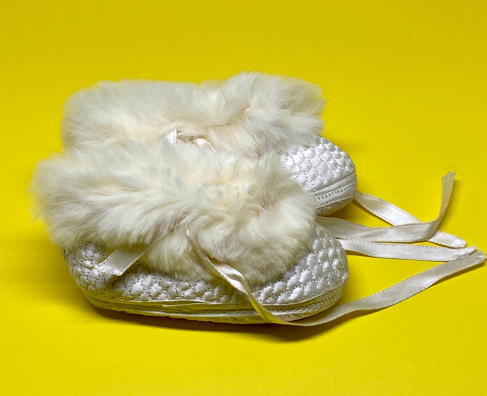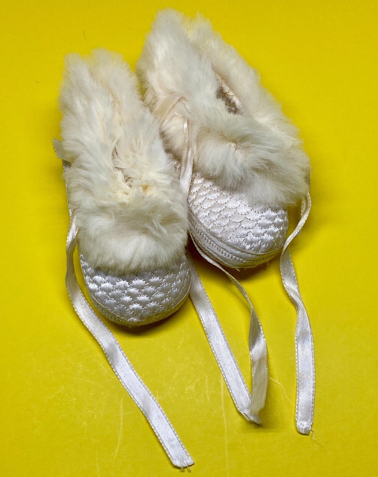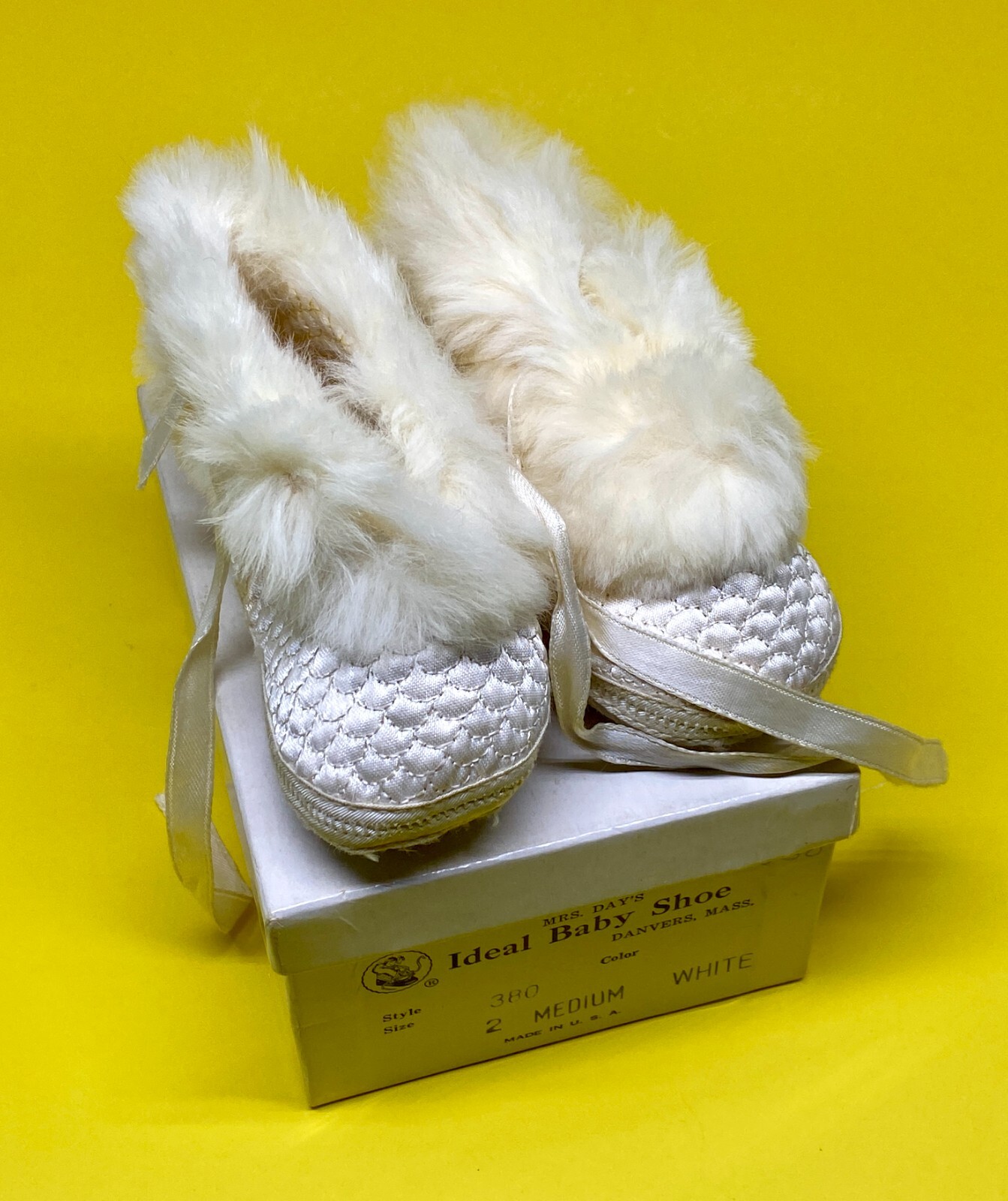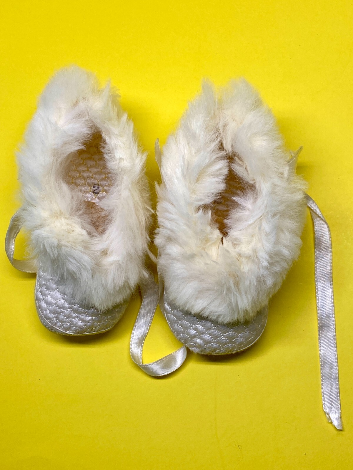 Vintage Mrs. Day's Ideal Baby Shoes Booties Fur Size 2 Off White 1960s
