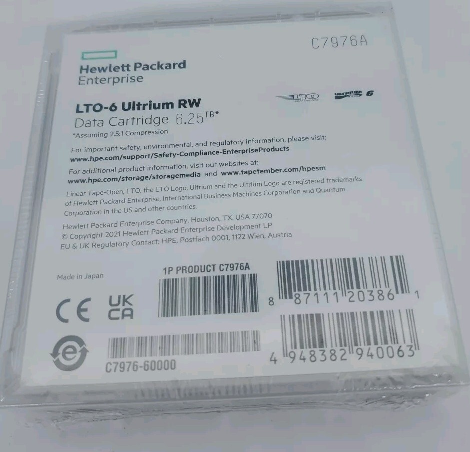 как выглядит New HPE LTO-6 Ultrium 6.25TB RW Data Cartridge Backup Storage Tape C7976A Sealed фото