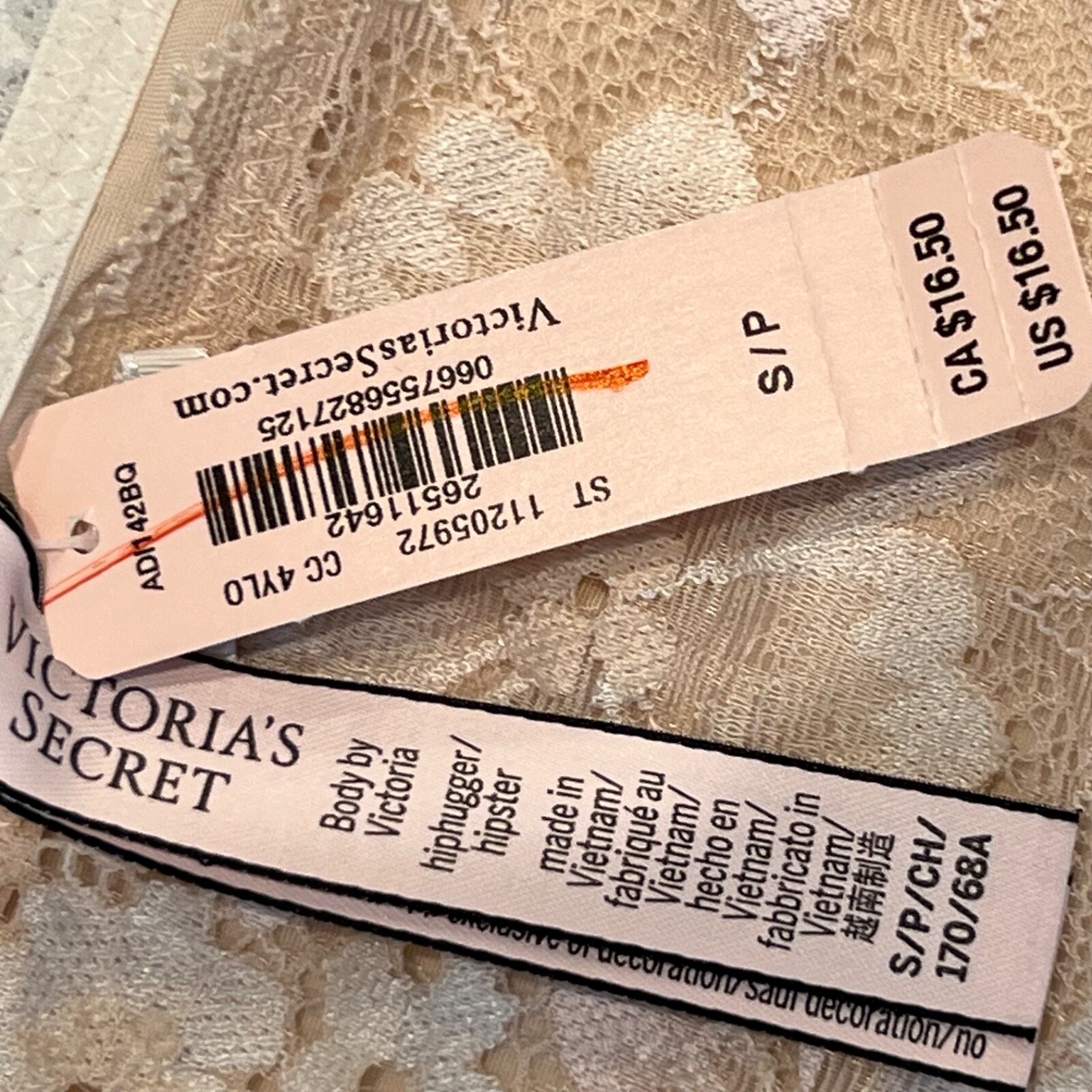 как выглядит NWT VICTORIAS SECRET Body By Hipster Hiphugger Pantie Sz XS-M-L-XL Beige Lace фото