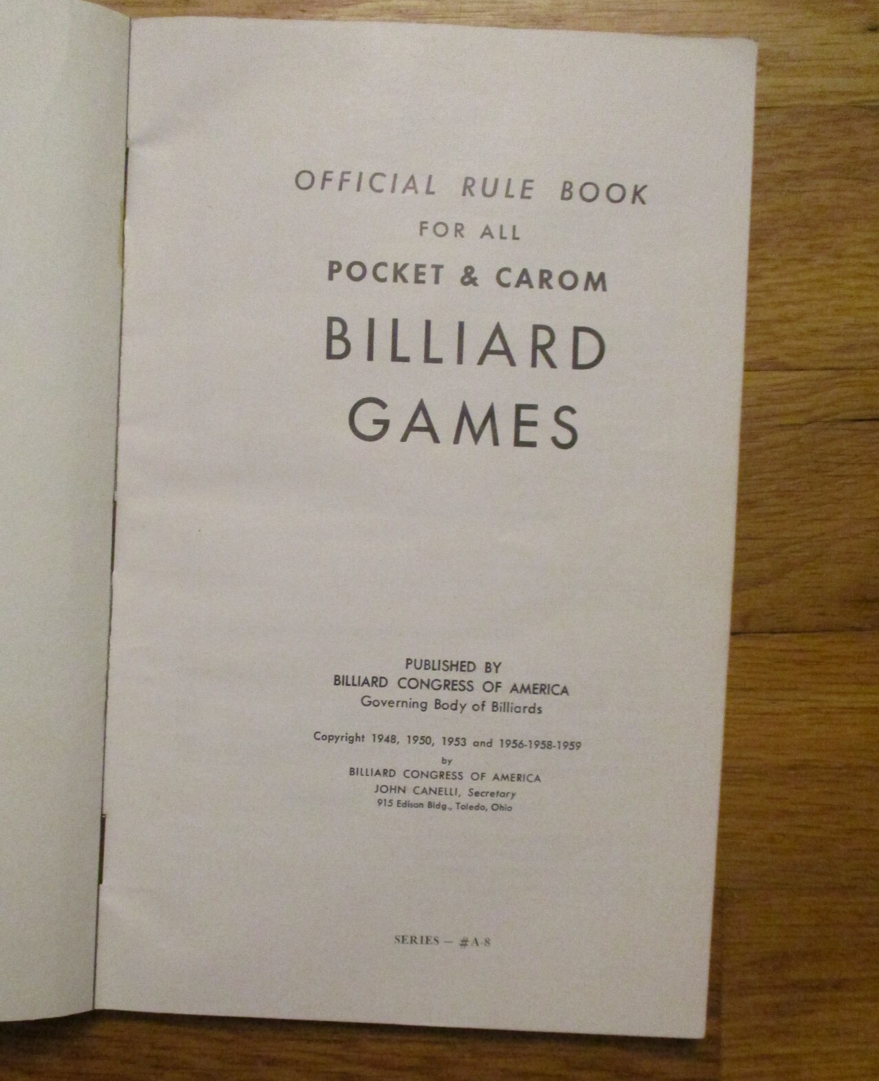 • 1959 Official Rule Book Pocket Carom Billiard Games Congress of America Book