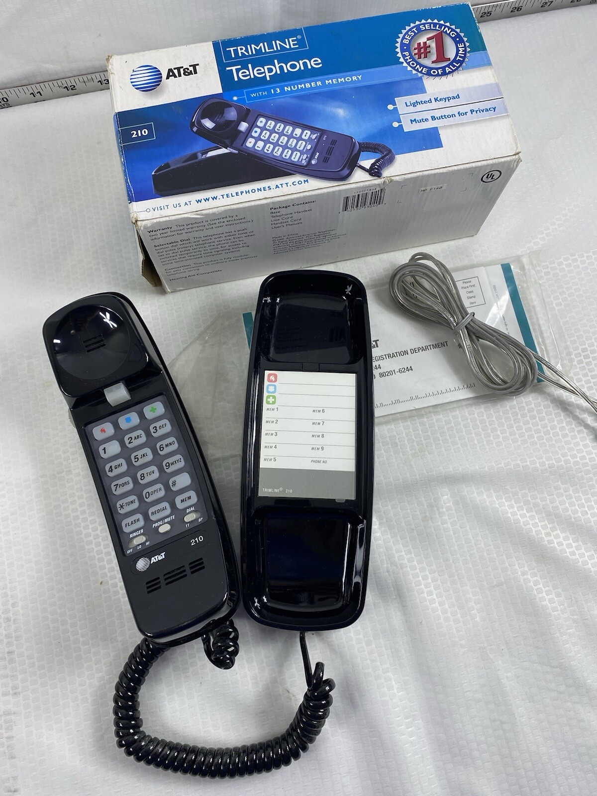 AT T 210 Black Trimline Corded Phone with 13 Number Memory Additional Features