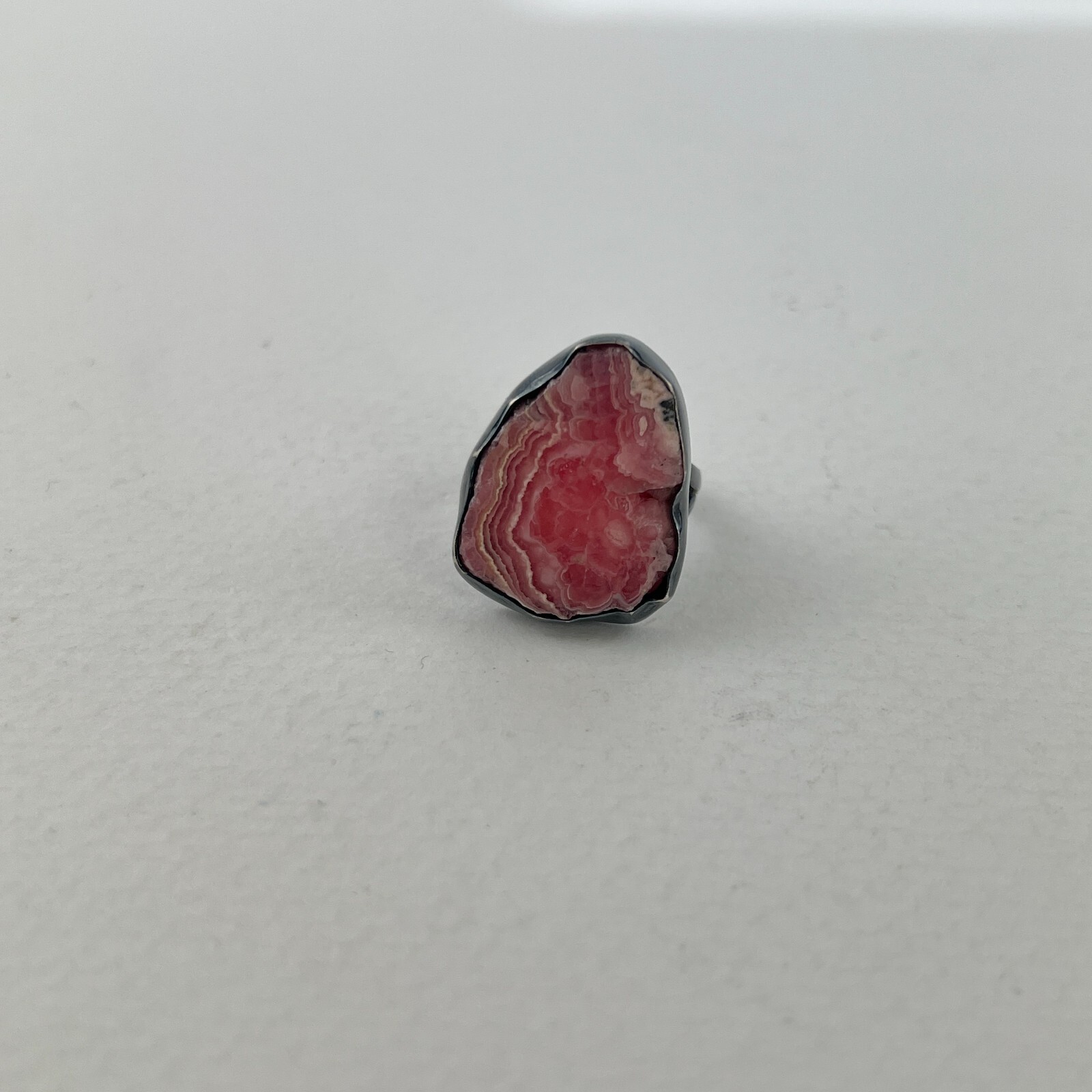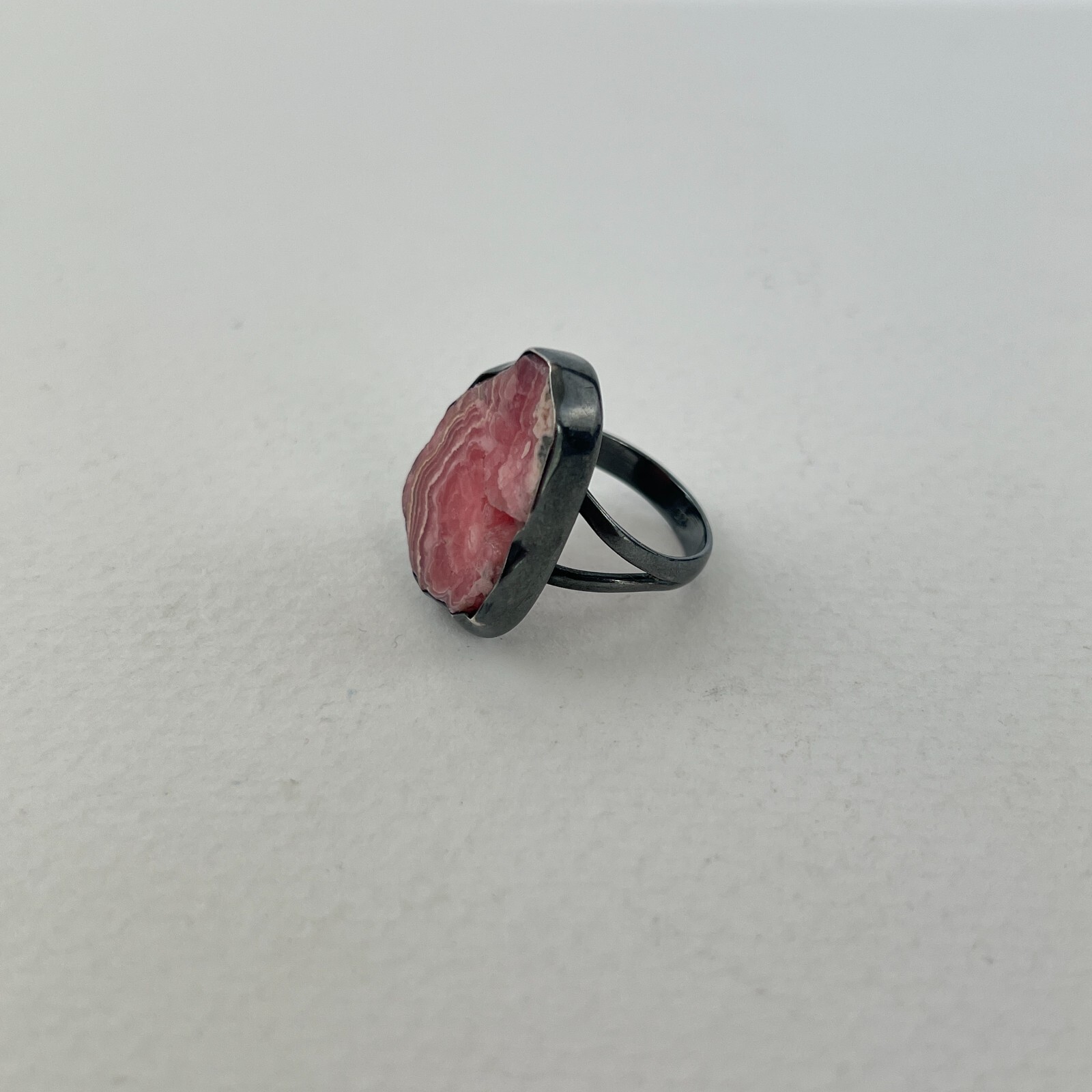 Rhodochrosite Sterling Silver Ring 9 Oxidized Handmade Natural Gemstone Art 925